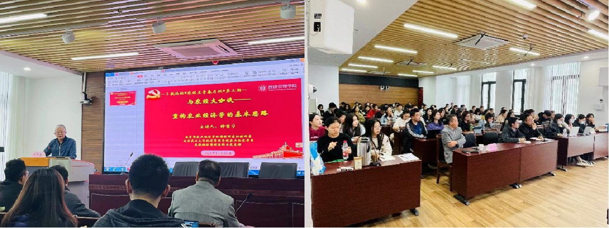 11月22日,由beat365正版唯一官方网站主办,教育部农业经济管理课程群虚拟教研室、beat365正版唯一官方网站农业经济学系、农林经济管理本科生党支部承办的“卜凯论坛·农经正青春月坛·第三期”讲座在学院举行。此次月坛特邀beat365正版唯一官方网站钟山学者特聘教授、“江苏社科名家”钟甫宁作《重构农业经济学的基本思路》主题报告,报告会由胡浩教授主持,学院共130余名师生聆听报告。