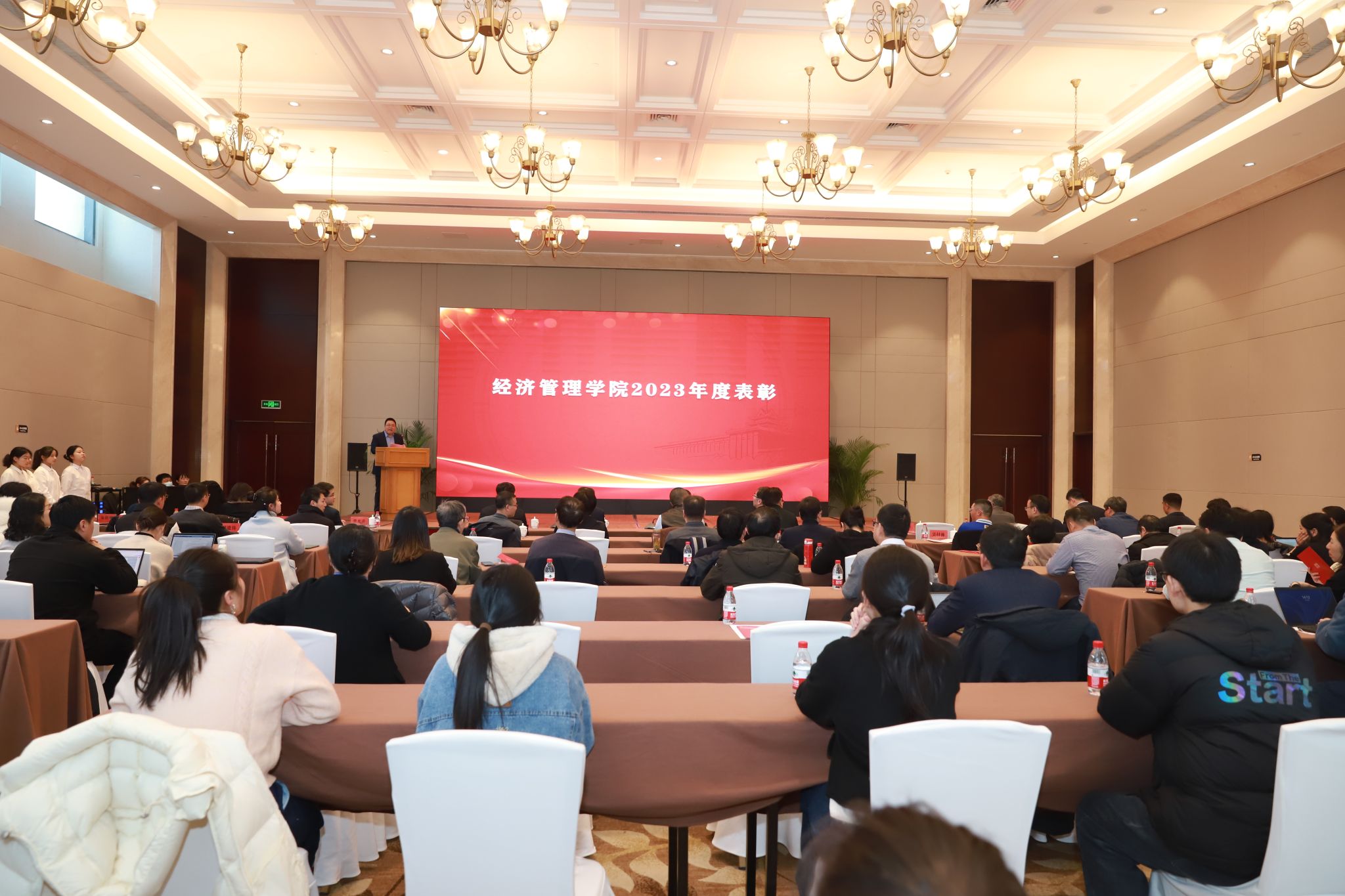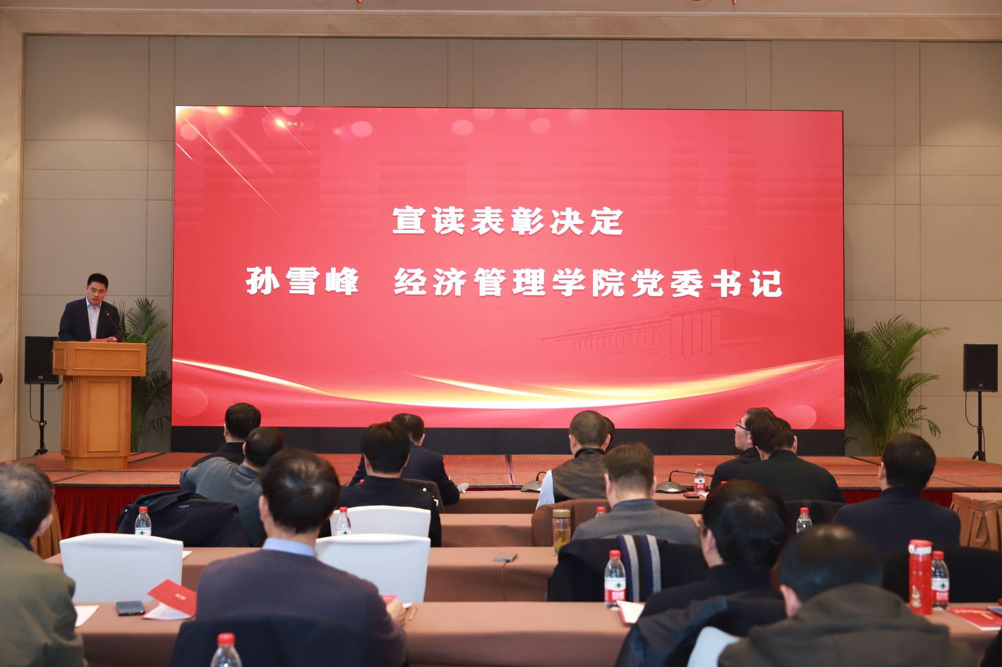 院党委书记孙雪峰宣读获奖师生名单。他表示, 2023年学院围绕党建创新、人才培养、科学研究、师资引育等方面工作,深耕发展、创新奋进,涌现出诸多师生荣誉与成绩。2024年,立足新起点、起航新征程,希望广大经管师生踔厉奋发、勇毅前行,继续谱写学院发展新篇章。