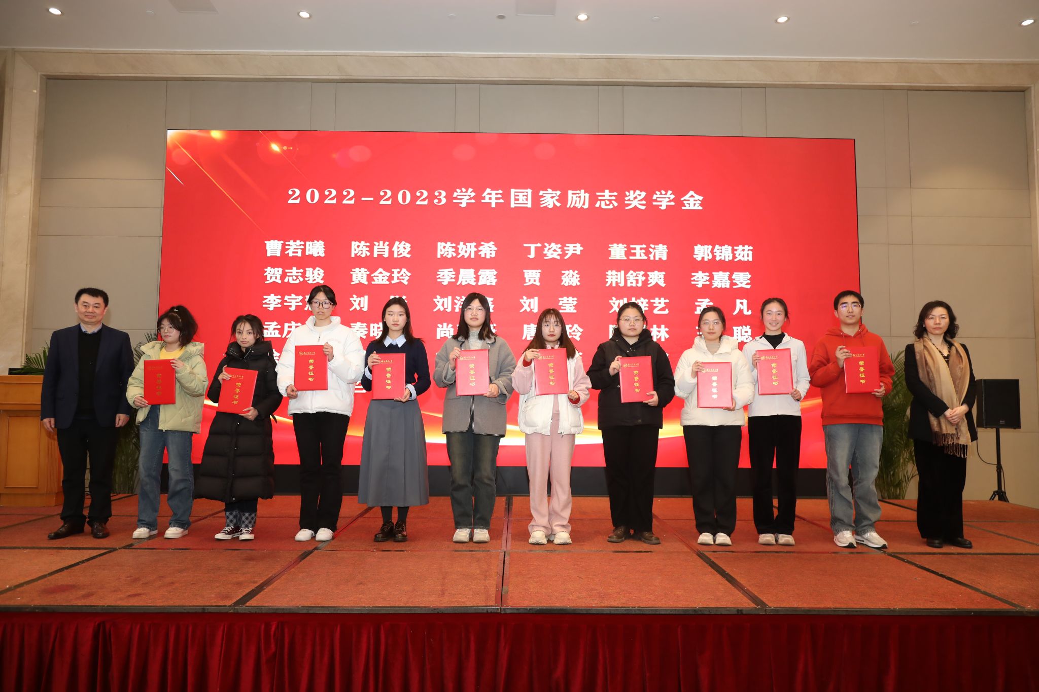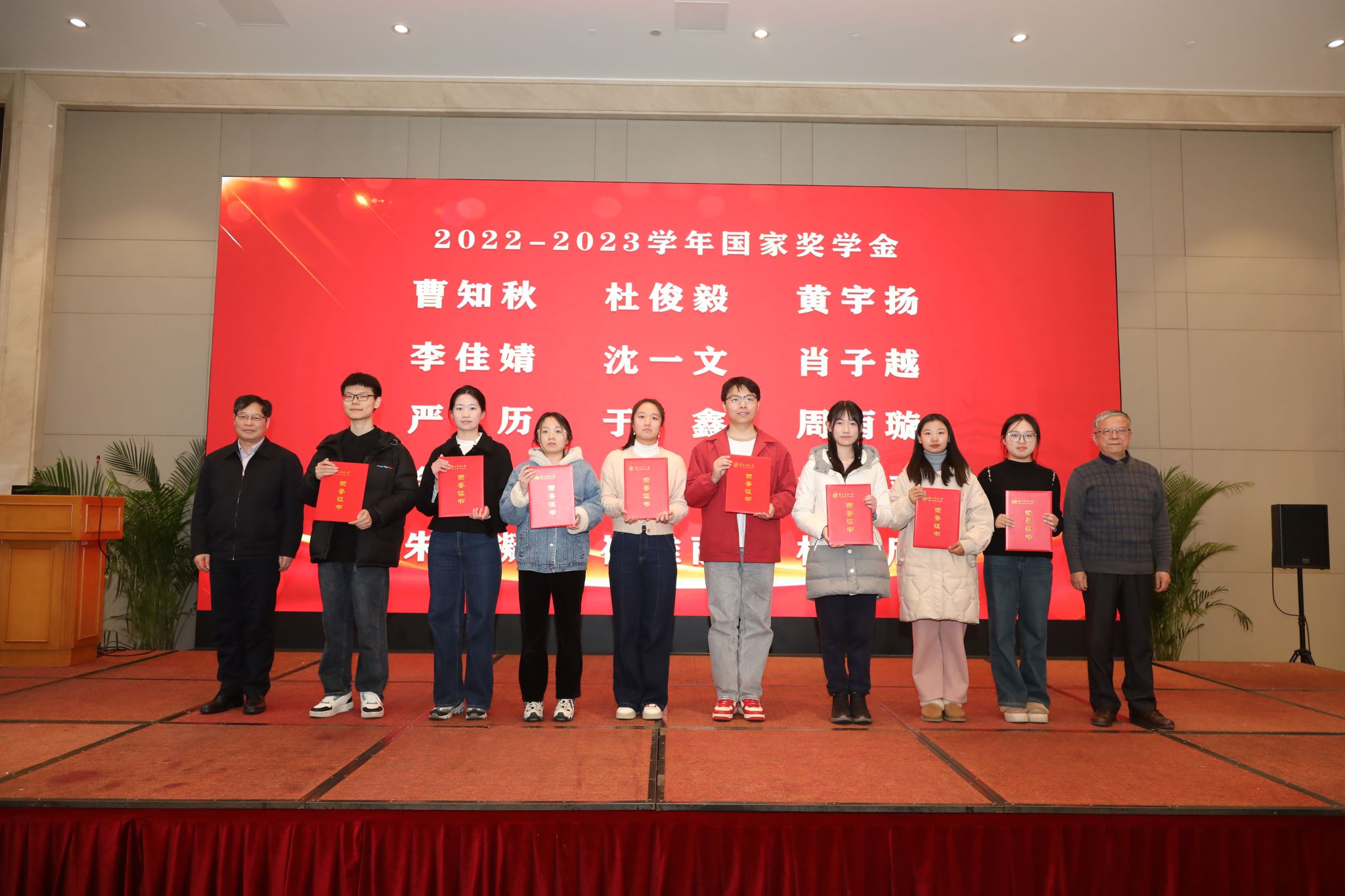 江苏省教育厅原副厅长、党组成员袁靖宇,校学术委员会副主任委员、“钟山学者”首席教授朱晶共同为学院获2022-2023学年国家励志奖学金学生颁奖。