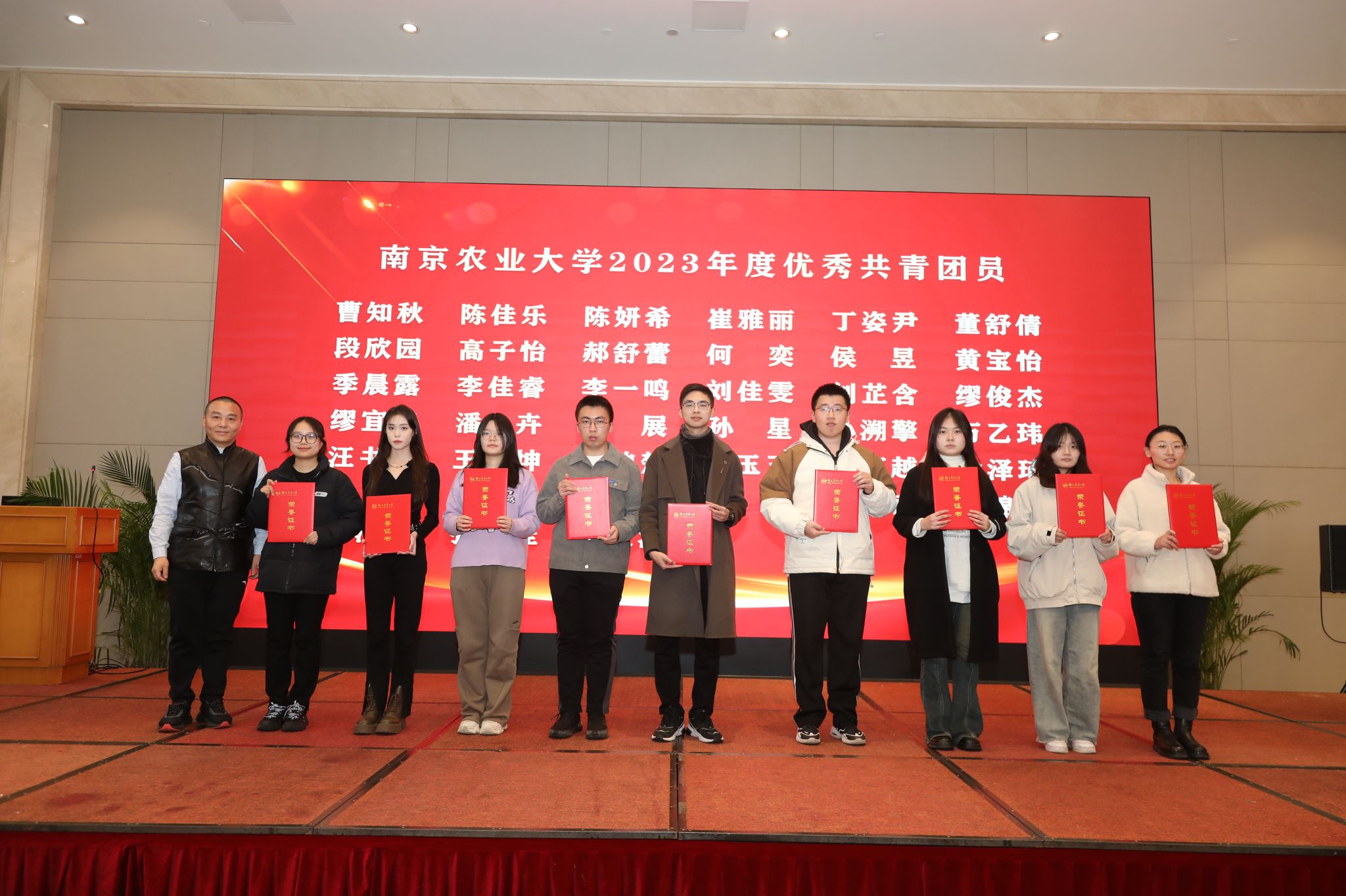 农业农村部南京农业机械化研究所副所长曹光乔,校科学研究院副院长、学院朱战国教授共同为荣获beat365正版唯一官方网站2023年度优秀共青团干部学生颁奖。