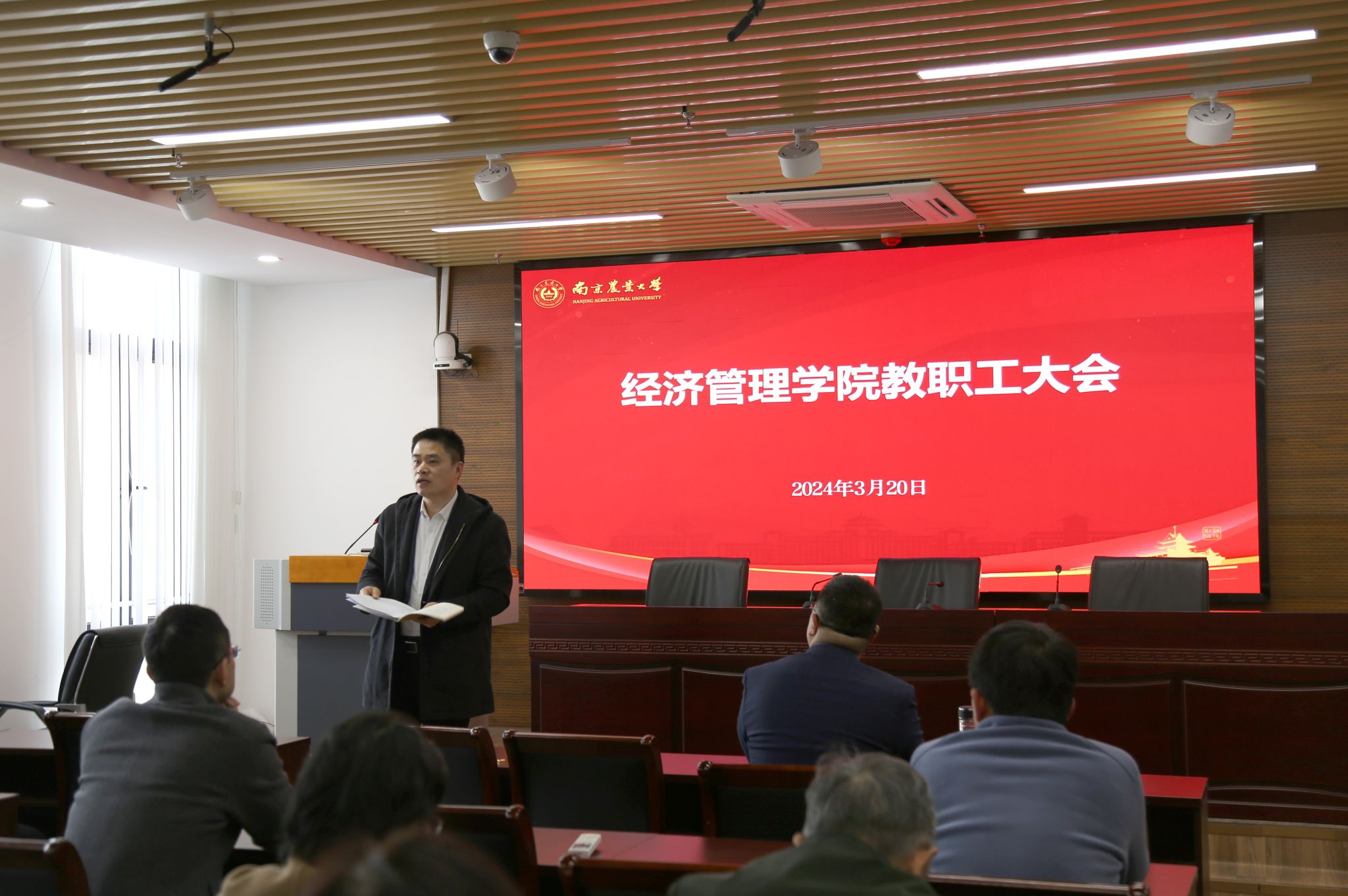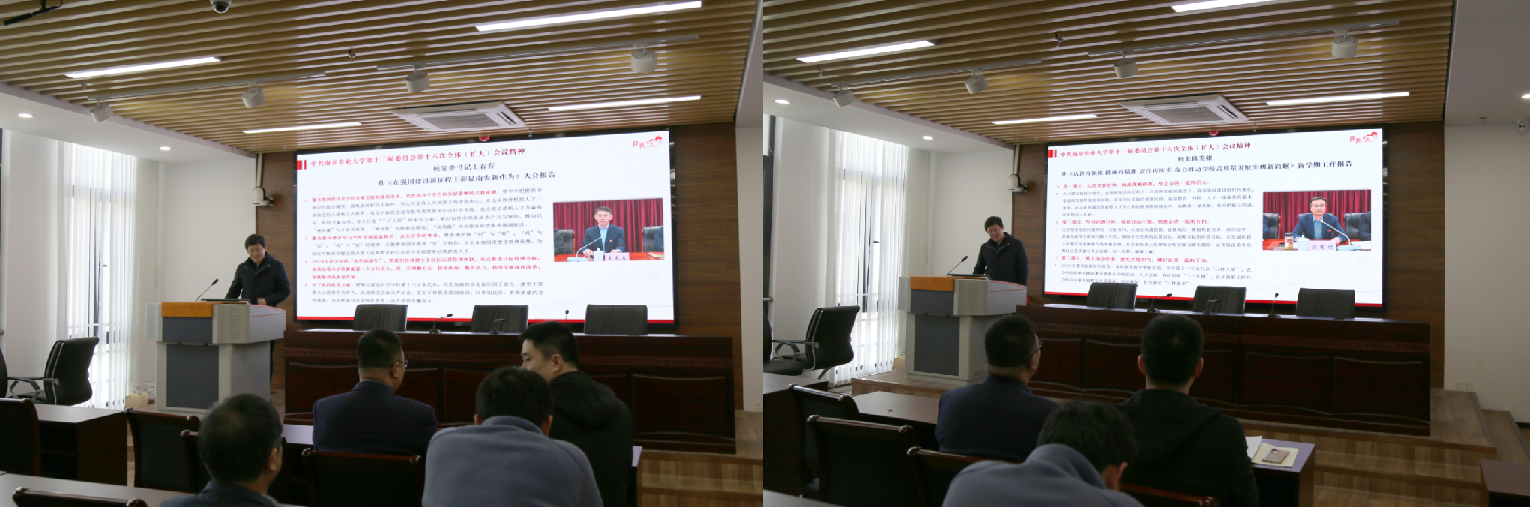 院党委书记孙雪峰对新学期意识形态工作、课堂教学规范等作了重点强调。同时通报了学院党委换届选举工作部署进度、学院“新时代南农精神大讨论”工作进展。他表示2024年是学校发展的关键之年,学院要以党建促中心工作发展,引领全院教职工凝心聚力服务于学校发展总体目标、“双一流”建设和“十四五”规划的核心任务,实现学院与学校发展的良性互动。