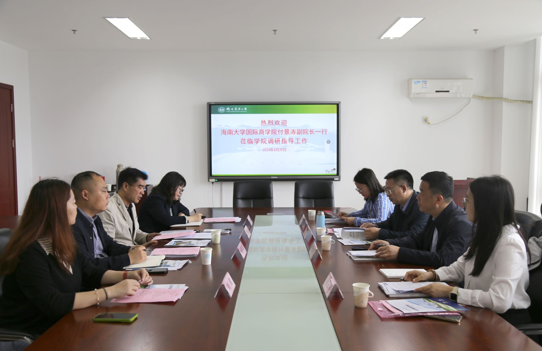 4月29日上午,海南大学国际商学院副院长付景涛、农业硕士项目主任邓须军副教授等一行来院调研交流,beat365官网副院长耿献辉、经济贸易系副系主任张兵兵教授等出席座谈。