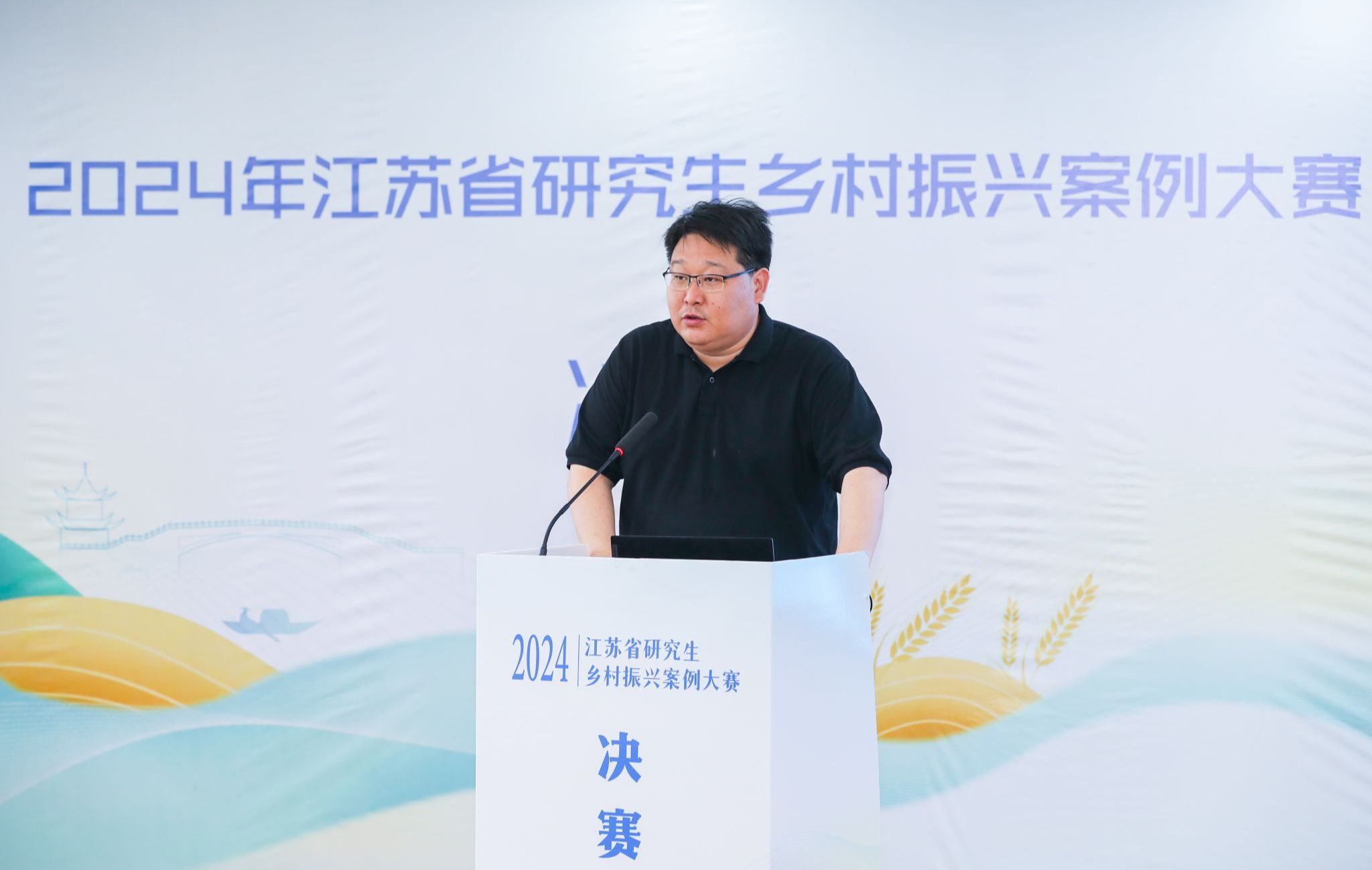 王飞代表高淳区政府致辞,他对现场嘉宾、评委及参赛团队的到来表示欢迎,对大家长期以来给予高淳乡村振兴工作的关心与支持表示感谢。近年来,高淳区委、区政府深入实施乡村振兴战略,通过聚焦人才振兴、搭建创新平台等有效方式为实现乡村全面振兴提供了强有力的人才支撑。他期待以此次赛事为契机,江苏高校师生团队携手为农村现代化、城乡一体化和一二三产业融合发展提供更多新思路。