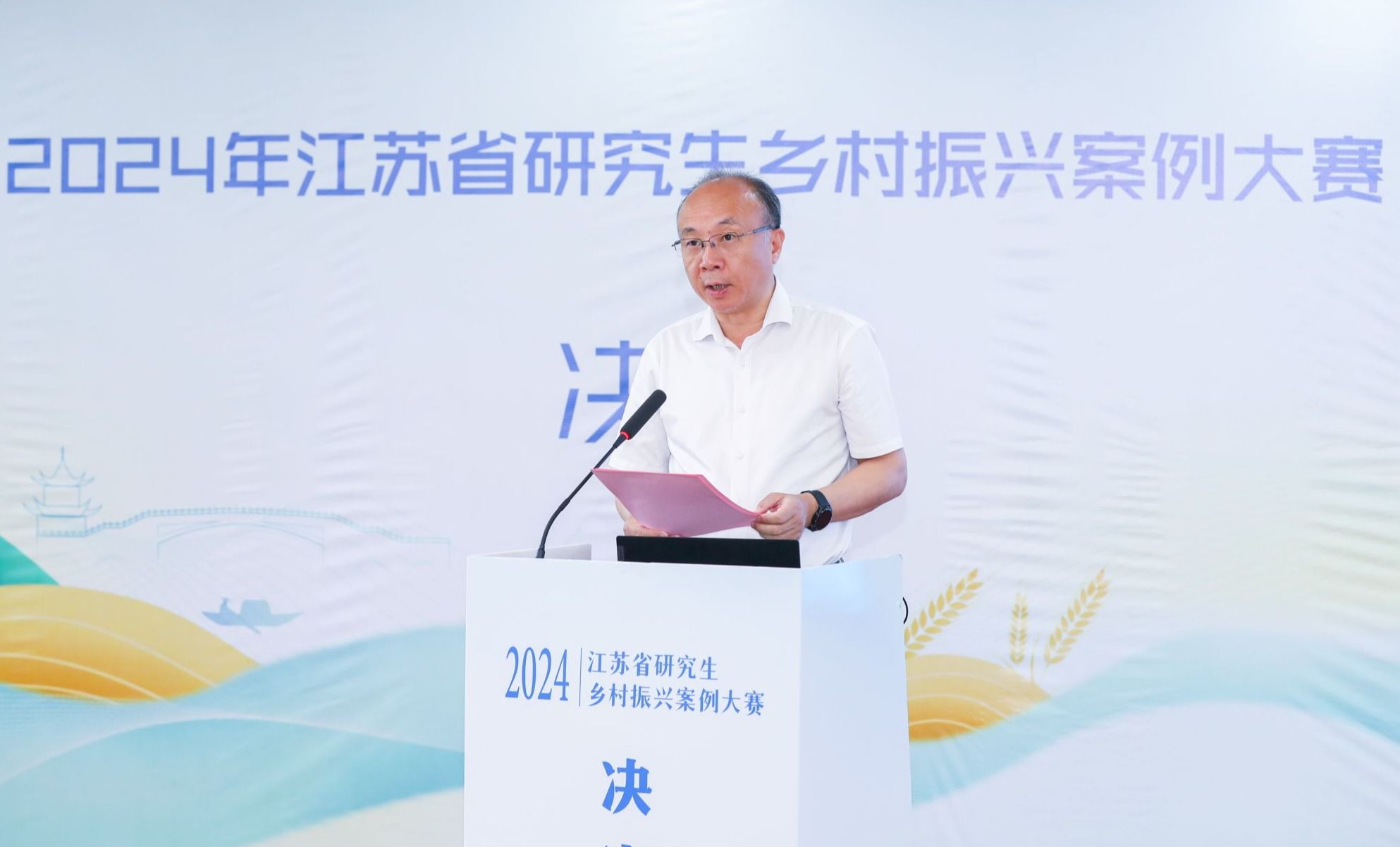 5月25日,2024年江苏省研究生乡村振兴案例大赛在南京市高淳区阳江镇成功举行。beat365正版唯一官方网站副校长、江苏省农学类研究生教育指导委员会主任丁艳锋,高淳区委常委、区政府党组成员王飞等出席开幕式。此次大赛以“乡村产业振兴”为主题,共汇集了来自江苏省内15支队伍、百余名师生参赛,赛事采用线上线下相结合的形式举办。开幕式由beat365正版唯一官方网站党委书记孙雪峰主持。