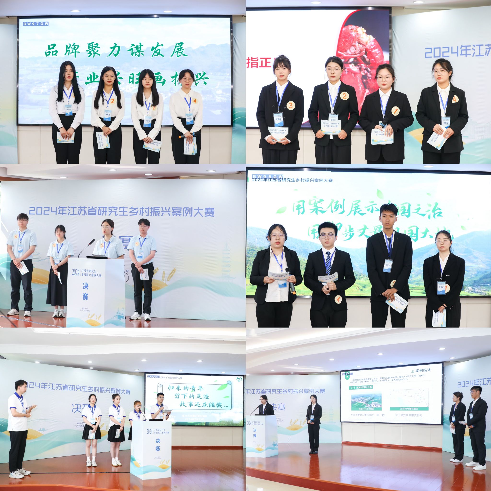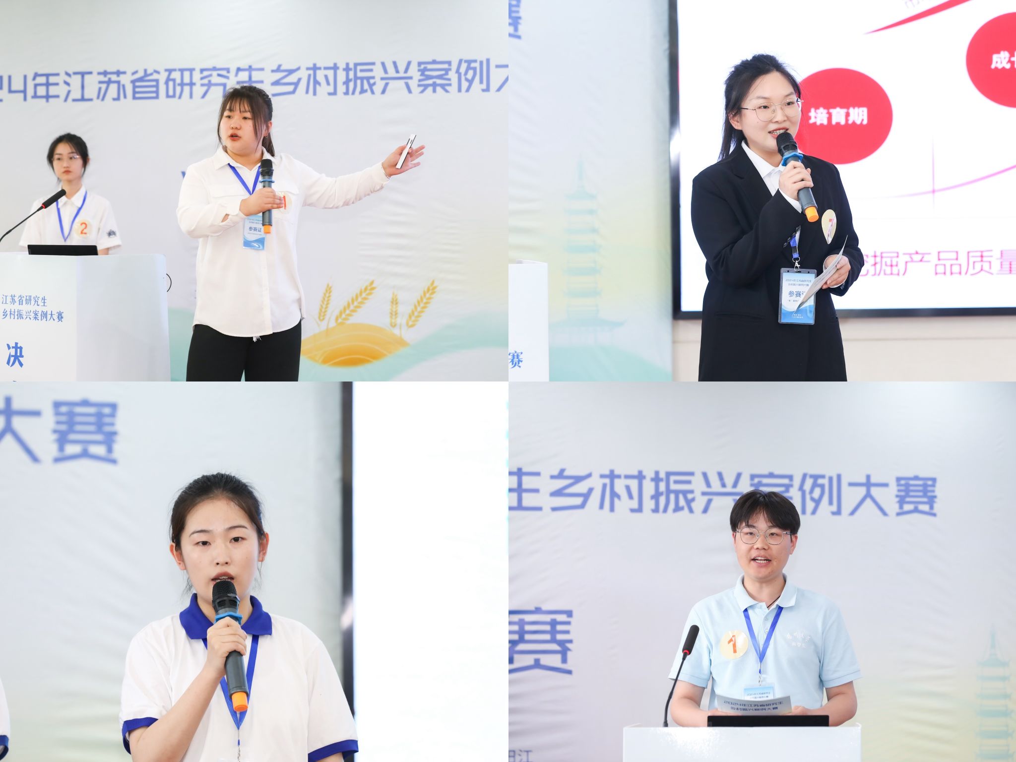 比赛环节,自然科学组(以下简称“自科组”)与社会科学组(以下简称“社科组”)分赛道汇报并分别接受评委组的点评与提问。自科组案例聚焦农业科技赋能乡村产业振兴及农业科技成果转化应用;社科组案例聚焦乡村产业发展路径、模式及城乡产业融合发展。奶牛疾病的防控、“打造鹤乡菊海“花经济”、活鱼无水保活技术、牛马塘“6+1”特色产业融合发展、盱眙龙虾的“二次创业”、淮泗村“小李书记”与“倒TOU辣条”……一篇篇生动、鲜活的案例既注入了参赛团队的辛苦与付出,也将动人、昂扬的乡村振兴故事搬上了赛事舞台。