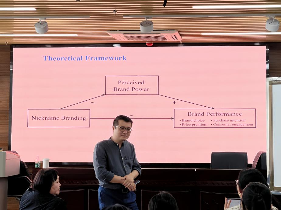 6月6日下午2点,学院“卜凯论坛·学术前沿”在第三实验楼706报告厅举办。此次报告由常向阳教授主持,葛继红教授、刘华教授、杨璐副教授、戴佳彤老师出席本次会议,同时本次活动也是市场营销课程群的示范性基层教学组织系列活动之一。加拿大西安大略大学毅伟商学院的市场营销助理教授张喆博士,作为特邀嘉宾,为我们带来了他在品牌管理和营销传播领域的最新研究成果。张喆博士不仅拥有美国休斯敦大学的市场营销学博士学位,还获得了佛蒙特大学的化学博士学位,他的卓越研究已发表在多本国际知名的学术期刊上,包括《Journal of Marketing》、《Harvard Business Review》、《Journal of International Marketing》和《Journal of the Association for Consumer Research》。