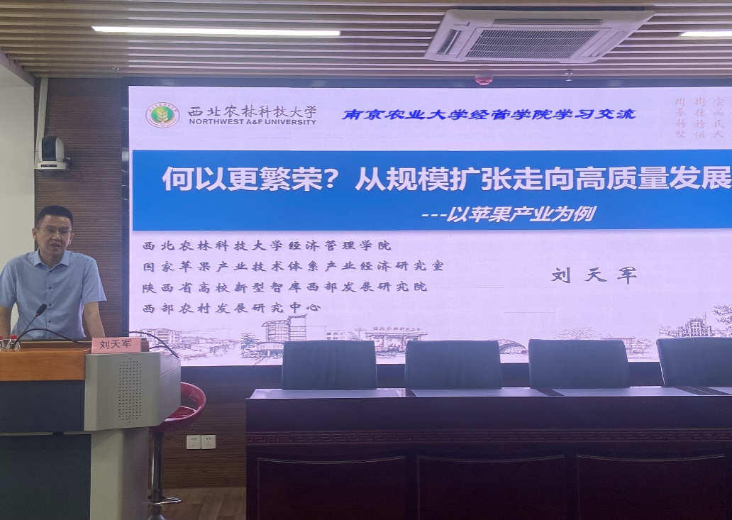 6月21日上午10点,学院“卜凯论坛·学术前沿”第336期在第三实验楼706报告厅举办。西北农林科技大学副校长、beat365正版唯一官方网站教授刘天军应邀作题为“何以更繁荣:从规模扩张走向高质量发展”的专题讲座,讲座由朱战国教授主持,纪月清教授、杨宗耀老师、张彤老师出席本次会议。