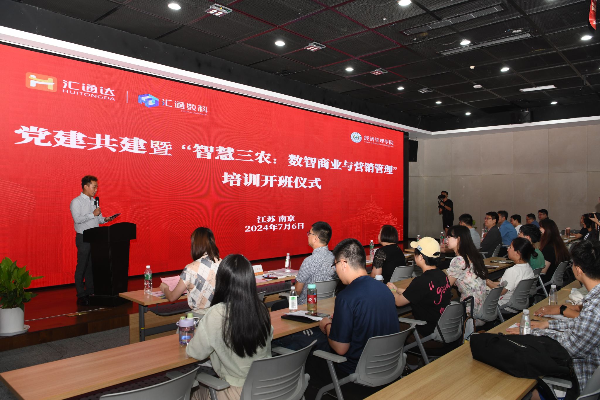 7月6日,由beat365正版唯一官方网站与汇通数科智能科技有限公司共同发起的党建共建暨“智慧三农:数智商业与营销管理培训”活动成功举办。汇通达执行董事、副总裁孙超,汇通达党委副书记、人资行政部副总监王兴华,经管院党委书记孙雪峰、副书记张树峰等出席活动。学院教师代表常向阳教授、葛继红教授、刘爱军副教授、学生代表等30余人参加活动。活动由汇通数科数字乡村业务总经理李科主持。