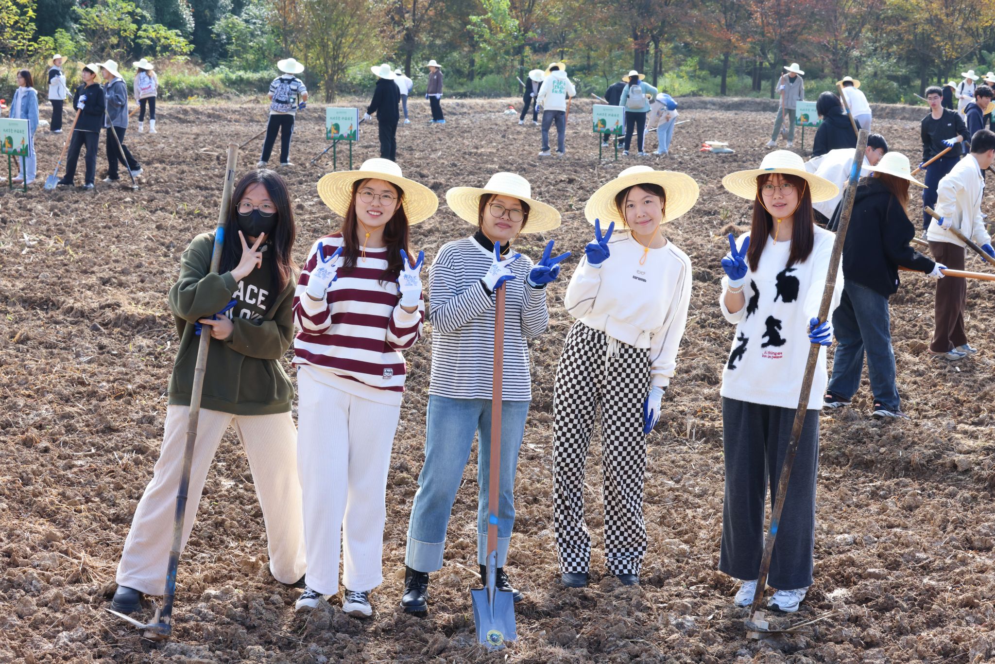 分发农具、认领地块、开沟、施肥、播种、覆土,一粒粒希望的种子播撒田间……启动仪式后,同学们走进各自的“二分地”,在生产指导老师的带领下,热火朝天地开始了新一轮冬小麦的播种。