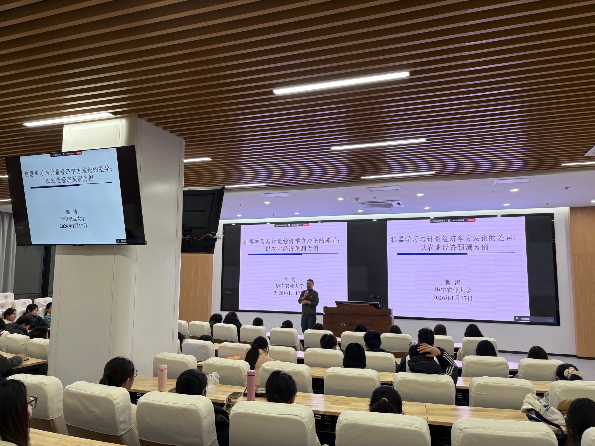 在职业发展规划系列讲座、大数据与机器学习在农业经济中的应用以及AI时代职业选择系列讲座中,讲座老师和分享嘉宾及校友结合个人职业发展经历,社会发展趋势,专业学科知识,同时分析了当下社会环境对就业结构和专业发展的影响,建议同学们在扎实学习专业理论的同时还需要时刻关注实践能力的提升,此外电商专业还进行了行为与经济实验操作等实验操作活动。