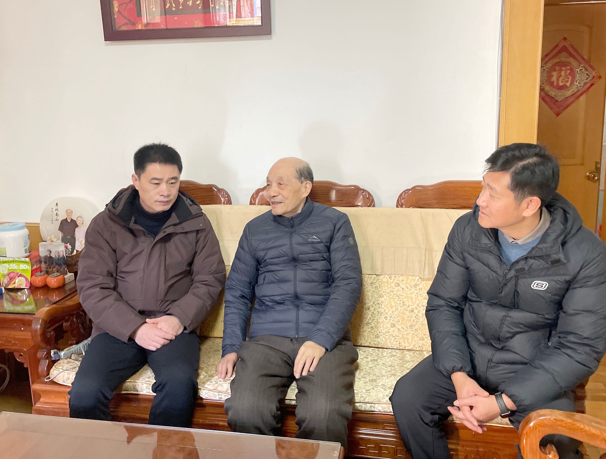 走访慰问中,孙雪峰、张树峰亲切询问老同志们的身体情况和生活状态,并认真听取了他们对学院未来发展的意见和建议。细心叮嘱他们要保重身体,遇到困难及时向学院反映;并提前为他们送上新年祝福,祝他们新春愉快、健康长寿、阖家幸福。老前辈们对学院和领导的关怀慰问表示感谢,并为学院过去一年各项工作取得的新成绩感到由衷高兴,并衷心祝愿学院新的一年再创佳绩。