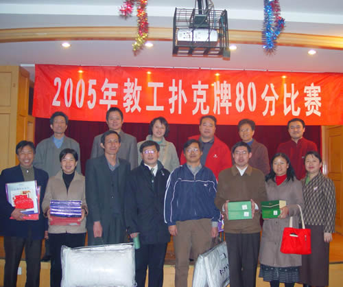 11月26日,校工会在教工活动中心举办“教工扑克牌80分比赛”,beat365官网刘荣茂、刘晓玲两位老师作为代表参赛。从上午9:00至下午6:00,经过六轮艰苦奋战,beat365官网教工代表队在二十多支代表队中脱颖而出取得第三名的好成绩。