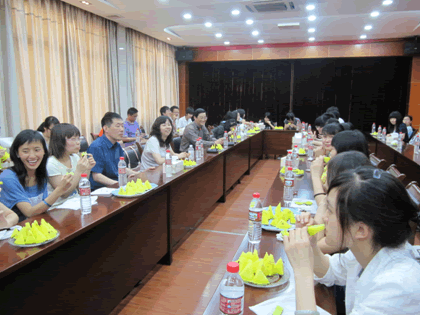 中午在政府食堂用完午餐后,我们返回了盐城市区,在盐城市农业委员会听取了农业委员会主任茆训东的报告。茆主任就建设富有中国特色现代农业的基本要求、沿海农业大开发及三农工作新形势新任务等进行了深入浅出的讲解,大家觉得受益匪浅,也引发了同学们的热烈的讨论。