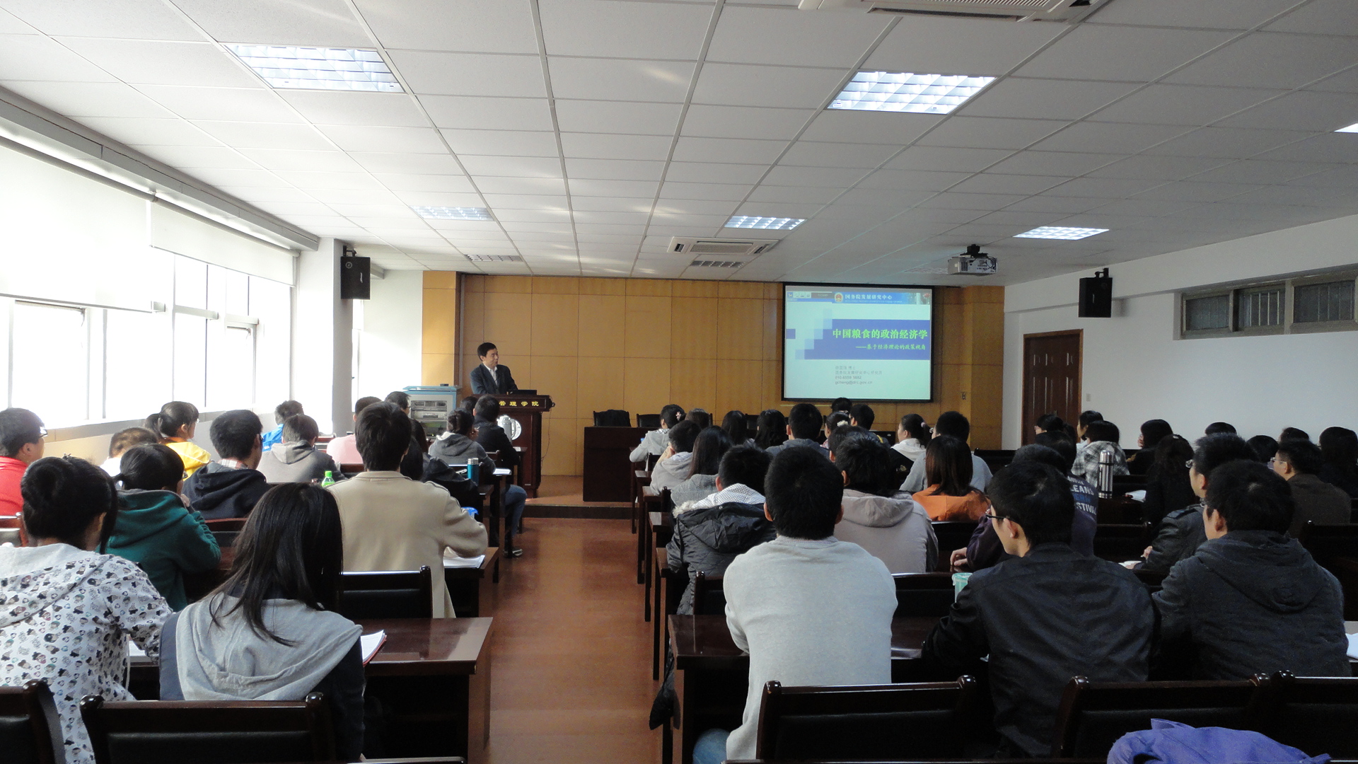 2010年11月13日上午9:30,beat365正版唯一官方网站报告厅5045座无虚席,国务院发展研究中心市场经济研究所副所长程国强博士来beat365官网做学术报告,主题为《中国粮食的政治经济学》。beat365正版唯一官方网站朱晶教授主持了本次报告会。