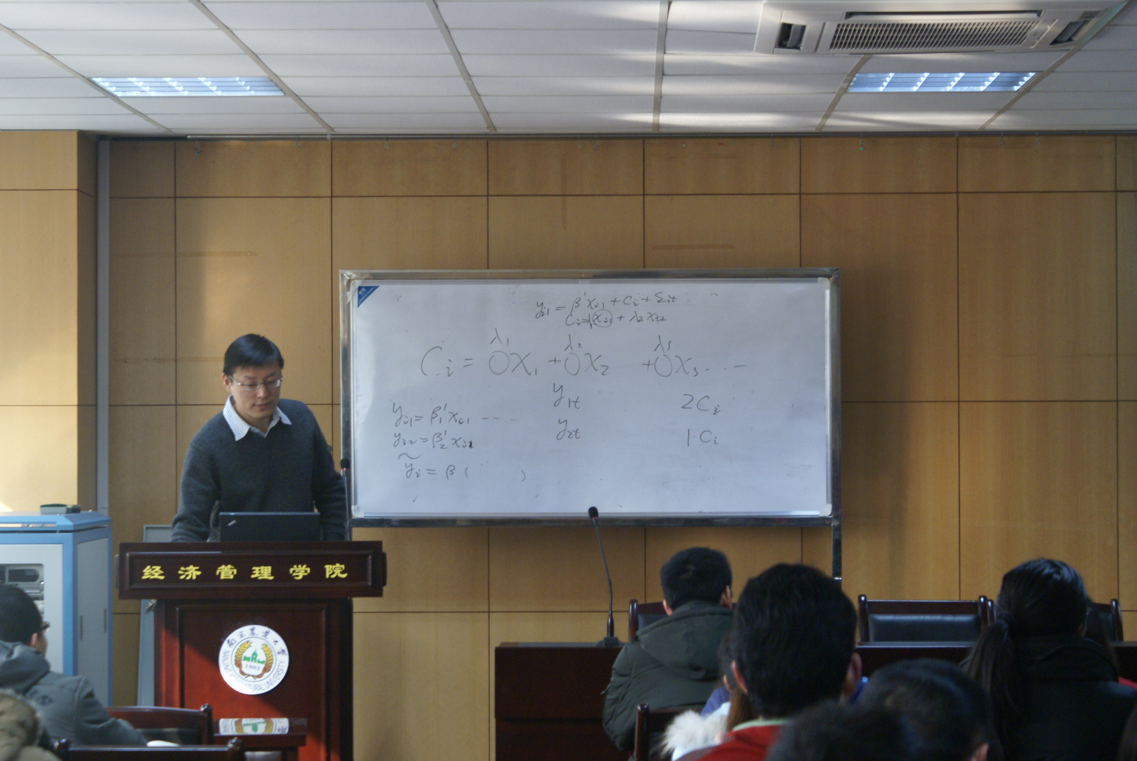 精彩的报告持续了一个多小时,陈博士深入浅出的讲解不仅让我们清楚认识到一些经典模型的独特之处,也让我们对面板数据模型的最新研究动态有了一定的了解。在场的同学还就自身在运用模型过程中的具体问题进行提问,陈博士都认真地一一作出解答。