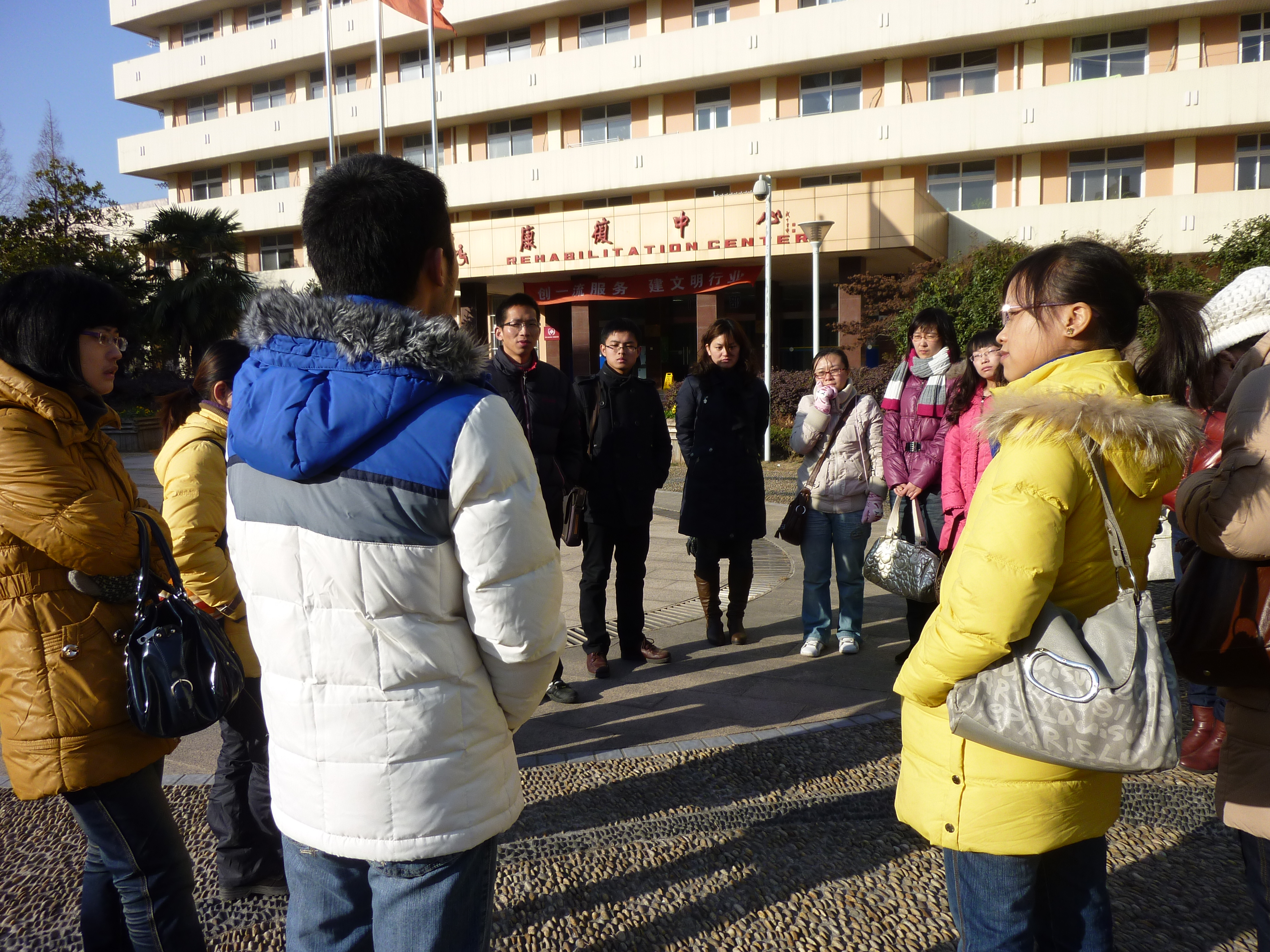 随后,大家来到福利院的康复中心楼前的广场上,在党建班班长的组织下,举行了本次活动的最后环节——总结会议。大家围成一圈,按逆时针的顺序一一发言,谈了自己参加一天的活动下来的感受和想法。即将成为预备党员的农经系研究生蒋秋林同学说“今天的活动很有意义,参观渡江胜利纪念馆,极大增强了党员们的历史责任感,而参观儿童福利院则有力促进了党员们的社会责任感。”,农经系老党员张聪颖同学表示如以后有能力她将会领养一名福利院里面的婴儿,为社会贡献自己应有的力量。其他党员也纷纷表示今后还会以物质慰问或精神慰问等方式慰问再次福利院,再次接受思想上灵魂上的精神洗礼。最后,党建班班长做了本次活动总结,她希望大家再接再厉,坚持以共产党员的标准要求自己,牢记历史使命,坚持为社会贡献自己力所能及的贡献。