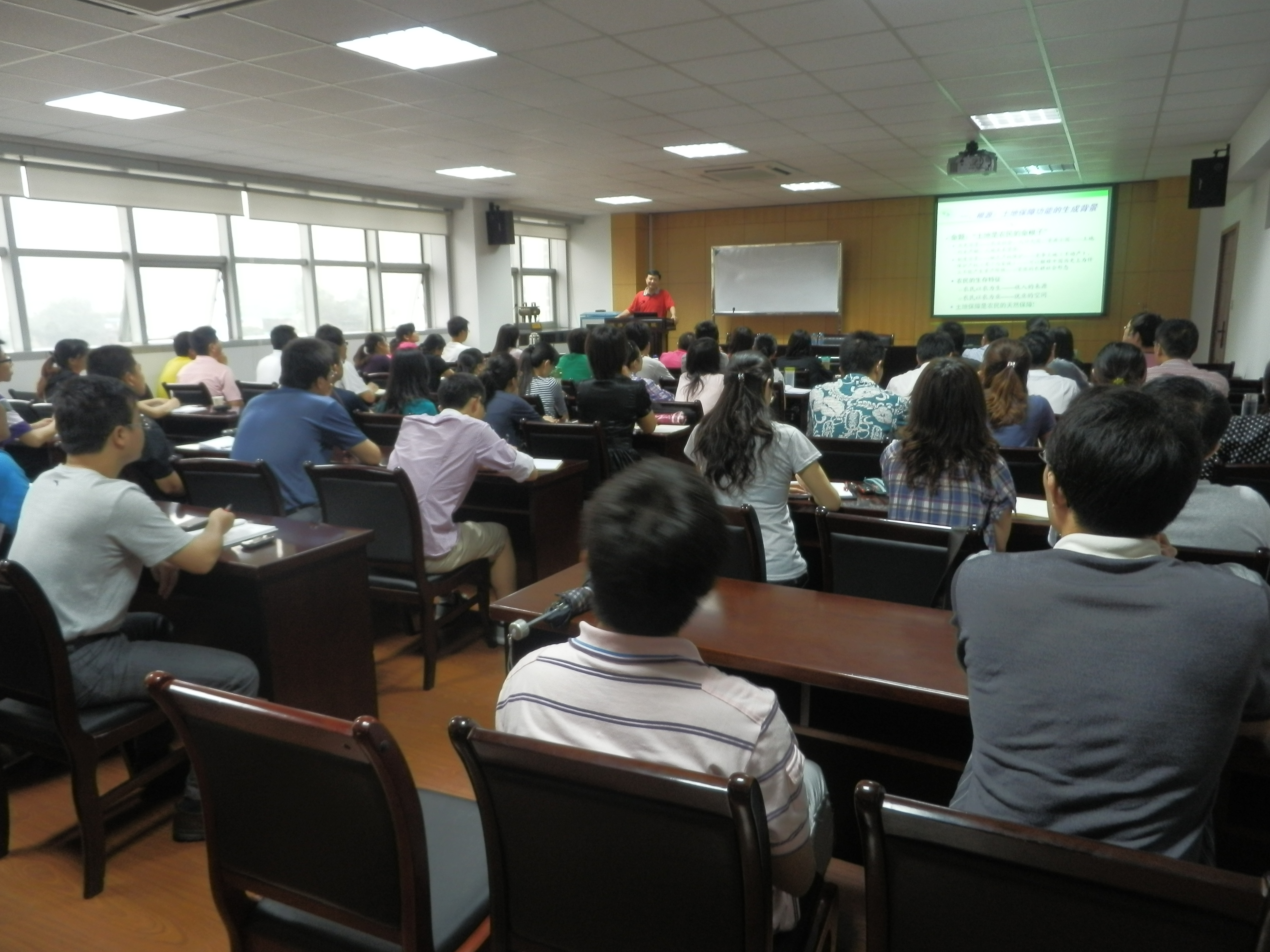 在报告的开始,罗教授提出了“土地是农民的命根子”这一命题,并以此展开分析了土地保障功能的生成的制度历史背景、制度背景,提出该背景下农民的生存特征是以农为生,以农为业,土地保障是农民的天然保障,土地制度安排是国家强制安排的结果,即产权强度低,进而可以随国家意志的改变而变更,土地的福利保障功能决定了家庭承包经营前提下的土地资源配置——均包制,均田承包的目的正是追求福利保障的公平而非出于资源利用的效率;紧接着,罗教授分析了新形势、新格局下土地制度的现实状况,即土地保障功能的弱化,他以相关统计数据说明了土地保障功能的弱化体现在农户“不以农为主”——兼业化,农户“不以农为生”——副业化,农民“不以农为业”——老龄化与妇女化,得出结论:伴随着农业的副业化、边缘化,土地在相当程度上不再是农民的“命根子”,他还以其做的“农民是否愿意放弃土地”的实证研究再次论证这一结论;随后,罗教授就土地保障功能的隐患做了详细分析,他提出在农业现代化的进程中,土地的生产功能与保障功能的矛盾已经显现,超细小的农户规模是近30年来我国现代农业建设成效不显的“罪魁祸首”,我国农业现代化还面临着长期的挑战,罗教授特别提出,农产品的质量安全问题的内生性在于农户小规模经营的必然性,他还提出小规模的家庭经营欲采用现代化的生产方式,必须解决好相关基础设施、农产品质量、品牌及企业家经营能力的匹配问题,他指出强调土地保障功能已成为制度变革的硬约束——“福利陷阱”,变革的关键是寻找“土地福利功能”的替代机制;最后,罗教授提出土地制度变革的方向应是弱化土地的保障功能,强化土地的财产功能,其关键是盘活土地资产,增加财产性收入,罗教授主张的基本经营制度是“家庭承包、农场经营、服务合作”,并以现实的成功案例,向大家做了说明。