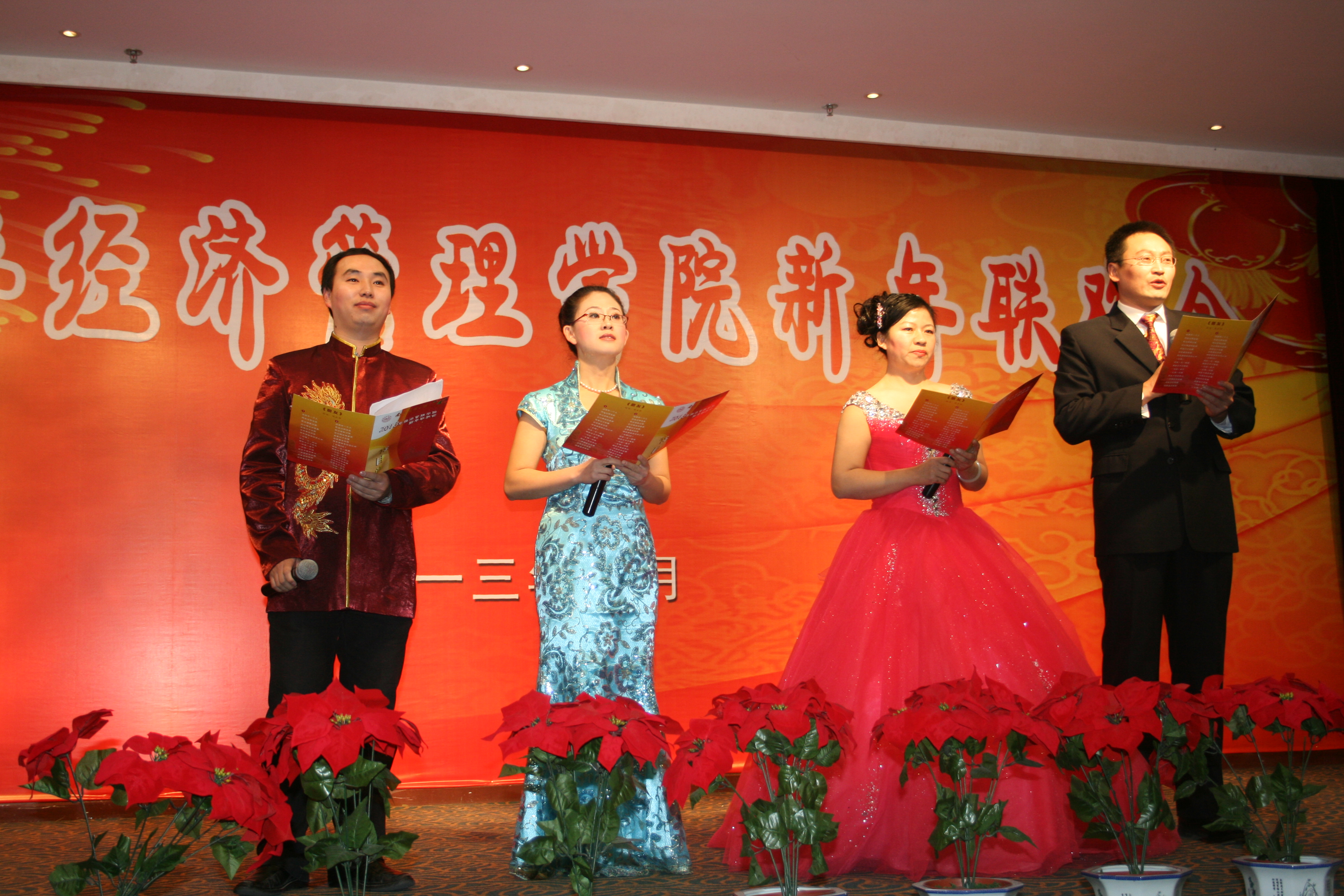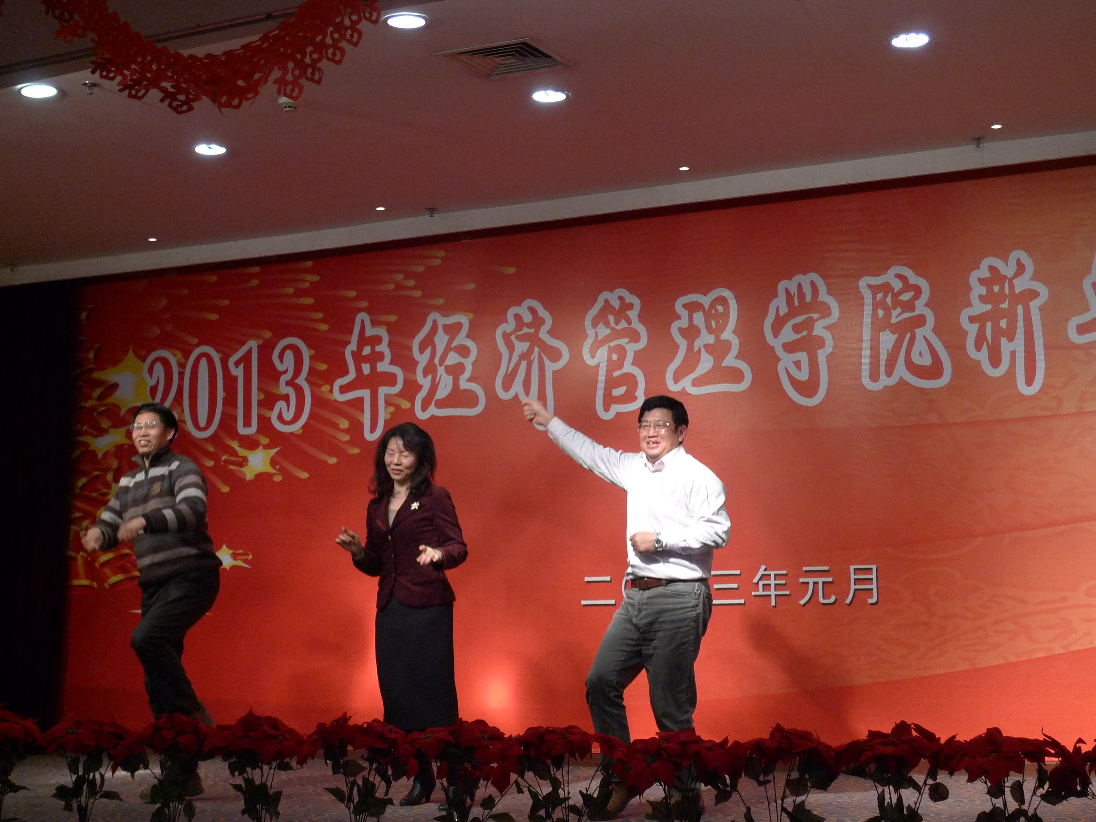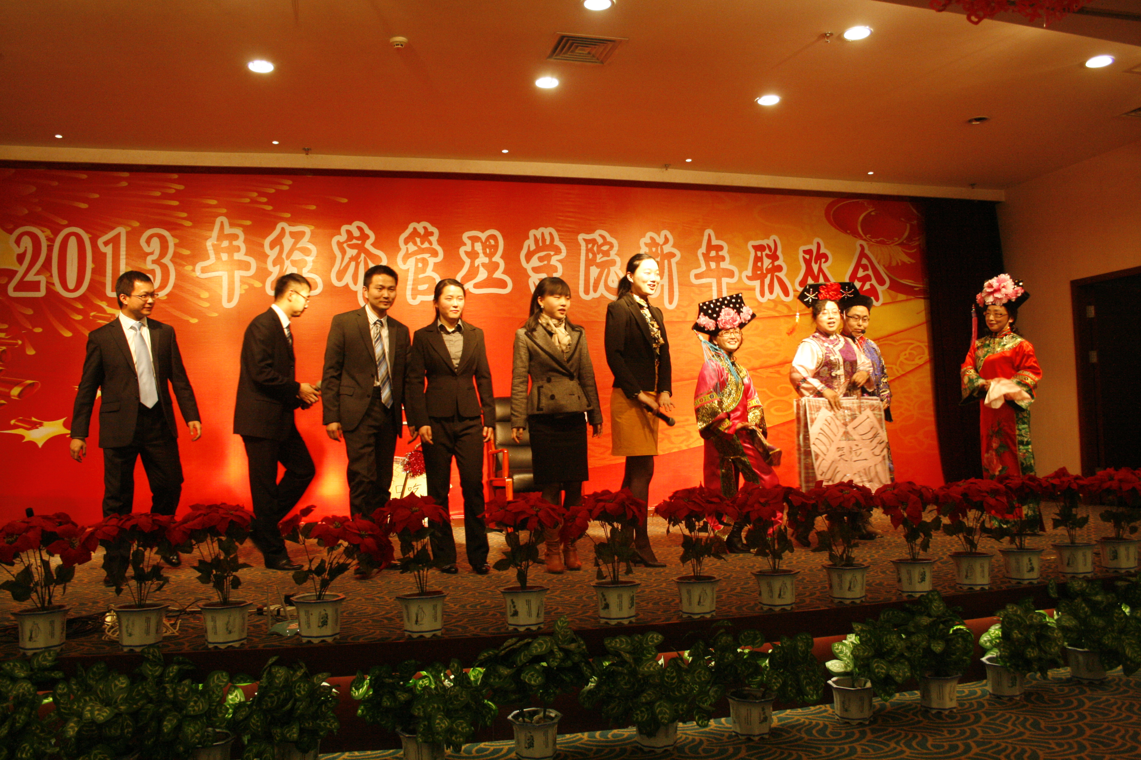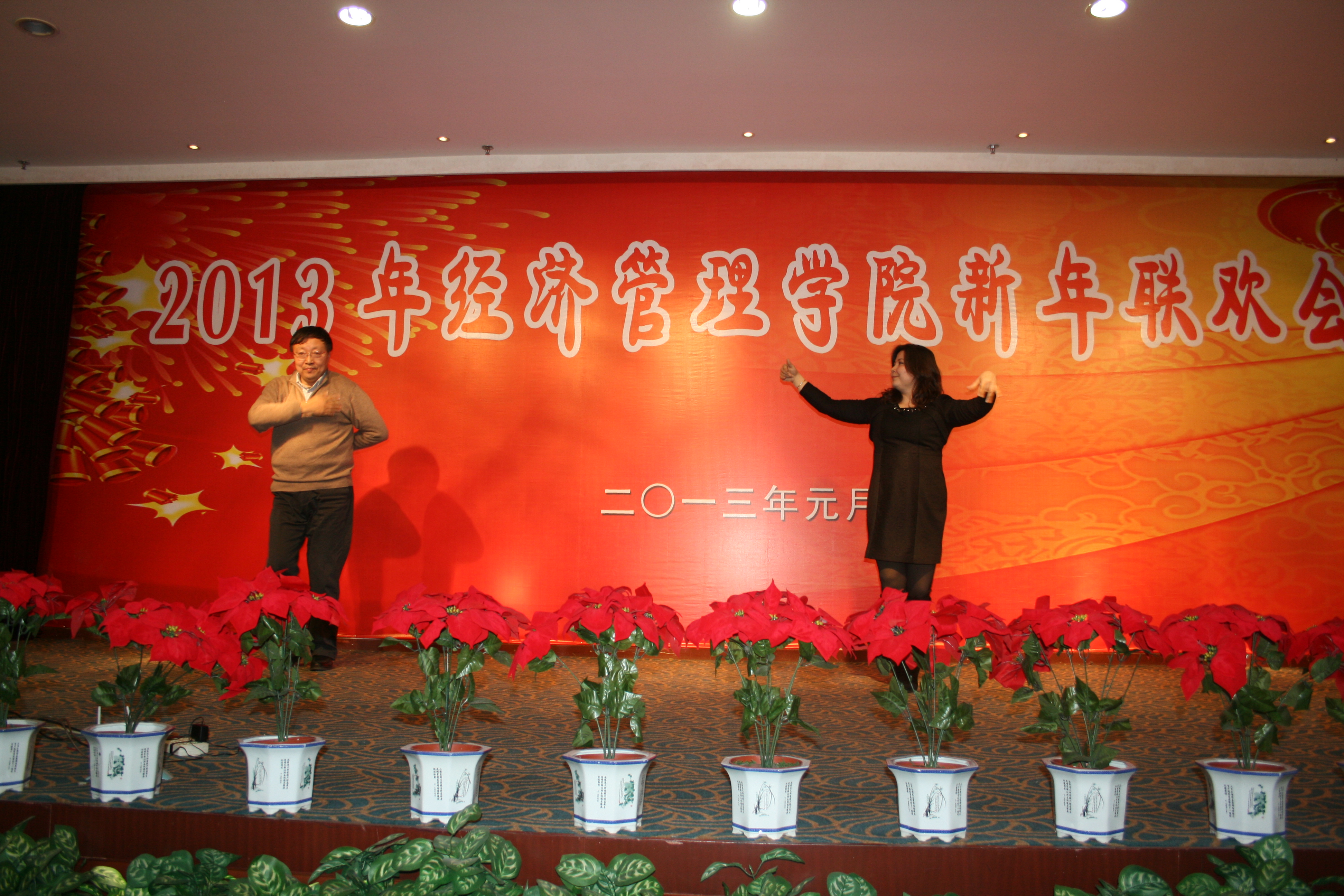 2013年1月4日下午3点南农大翰苑宾馆六楼报告厅里张灯结彩、喜气祥和,经管院100多名教职工欢聚一堂,喜迎2013新年的到来。