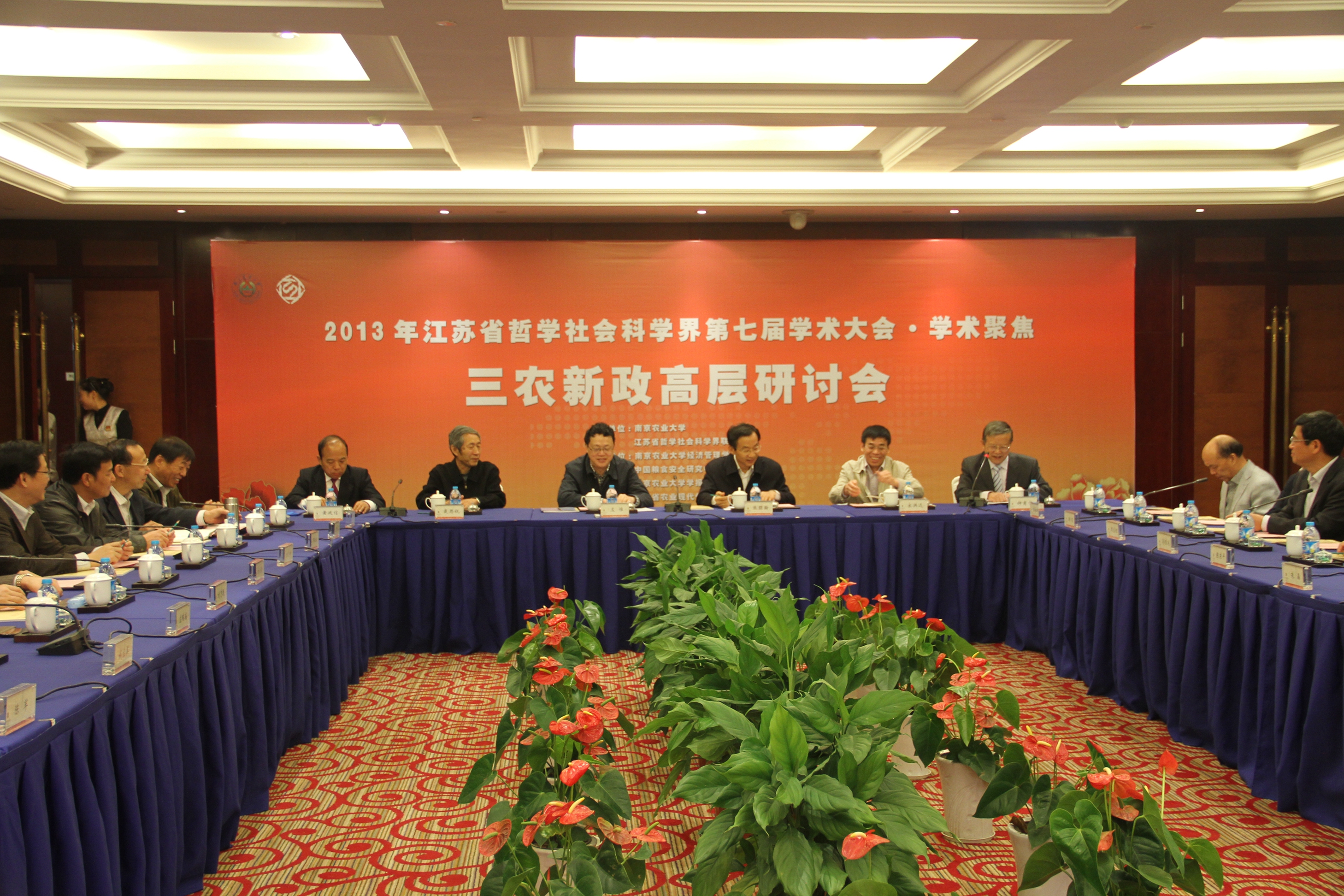 10月26日,2013年江苏省哲学社会科学界第七届学术大会•学术聚焦——三农新政高层研讨会在南京举行。此次大会由beat365正版唯一官方网站、江苏省哲学社会科学界联合主办,beat365正版唯一官方网站、beat365正版唯一官方网站中国粮食安全研究中心、beat365正版唯一官方网站学报(社会科学版)、江苏省农业现代化决策咨询研究基地承办。