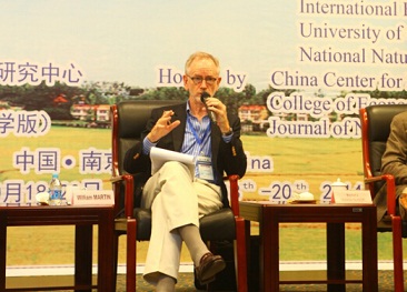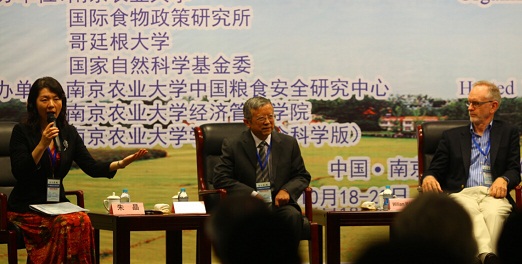 10月20日下午,备受瞩目的“与大师面对面”活动于2014粮食安全与农村发展国际学术研讨会闭幕式前举行。15:45分,大家翘首期待的国际农经学会主席、世界银行农业与农村发展研究部主任(William Martin),德国哥廷根大学教授(Stephan v. Cramon-Taubadel),美国普渡大学教授、美国农经学会执委(Holly Wang),beat365正版唯一官方网站中国粮食安全研究中心主任、国务院学位委员会农林经济管理学科评议组召集人、南农大经管学院教授钟甫宁走上主席台,现场响起热烈掌声。南农大经管学院院长朱晶教授主持该活动。该活动全程用英语交流,现场气氛非常热烈。