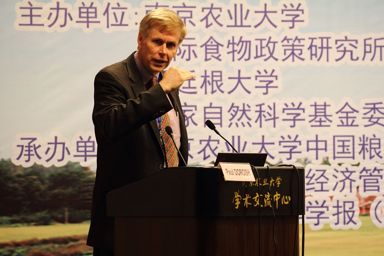 10月19日上午,2014粮食安全与农村发展国际学术研讨会主旨发言在翰苑大厦六楼报告厅举行。世界银行William Martin,中国科学院黄季焜、国际食物政策研究所(IFPRI) Paul DOROSH,南农经管学院钟甫宁教授进行主旨发言。主旨发言由国际食物政策研究所(IFPRI)Kevin CHEN 主持。