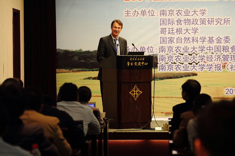10月19日下午,2014粮食安全与农村发展国际学术研讨会大会发言在翰苑大厦六楼报告厅举行。大会发言分两场举行,第一场由德国哥廷根大学Stephan v. CRAMON-TAUBADEL,美国康奈尔大学Calum G.TURVEY,韩国高丽大学Doo Bong HAN进行主题发言,南农经管学院院长朱晶教授主持,丹麦哥本哈根大学余武胜教授点评;第二场由联合国粮农组织Pedro Marcelo ARIAS,德国霍亨海姆大学Michael AHLHEIM,荷兰瓦赫宁根大学Arie KUYVENHOVEN进行主题发言,德国哥廷根大学于晓华教授主持,南农经管学院林光华教授点评。