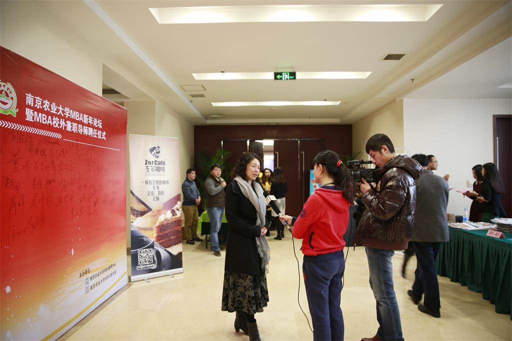 经管学院院长朱晶在随后的致辞中对我校MBA办学依托的经管学院科研、师资、学科情况进行了介绍,对出席论坛的嘉宾表达了真诚谢意和良好祝愿,并接受媒体采访。