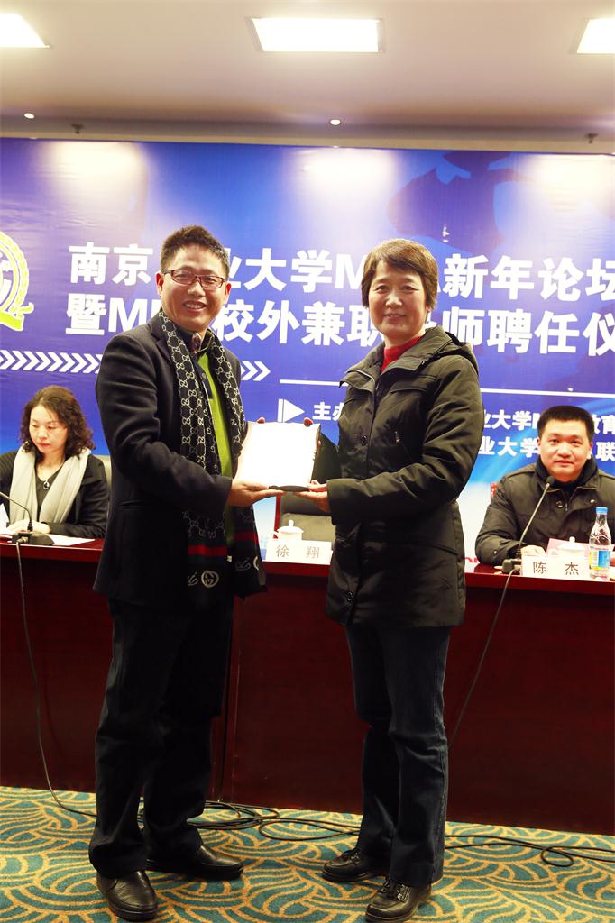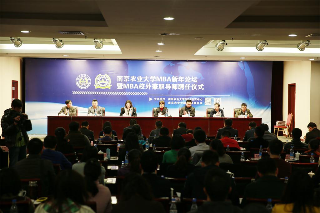 1月11日下午,beat365正版唯一官方网站MBA新年论坛暨校外导师聘任仪式在学术交流中心举行。我校在读MBA学员,毕业的MBA学员代表,MBA任课教师、工商与金融界的特约嘉宾等200多人相聚南农,共同庆祝beat365正版唯一官方网站MBA新年论坛暨MBA校外导师聘任仪式胜利召开。beat365正版唯一官方网站副校长徐翔、研究生院副院长陈杰、经管学院党政领导班子等出席了本次活动。
