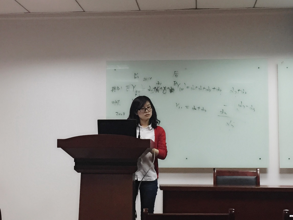 第三个汇报的是张燕媛同学,她汇报的题目是《医疗服务价格、医疗保险与农村居民家庭的医疗消费支出—基于分位数回归的实证研究》,通过使用2010年农业部全国农村固定观察点数据,采用分位数回归方法,分析了医疗服务价格和新农合对农村居民家庭医疗消费的影响,并进一步考察二者如何随医疗消费水平的变化而产生不同的影响。实证结果表明:医疗服务价格和新农合缴费水平的提高带来医疗消费支出的增加。医疗服务价格的作用则随着医疗消费水平的变化产生差异。新农合缴费在不同医疗消费水平上的影响并不存在显著差异,造成新农合对不同分位点上的医疗消费支出产生不同影响的原因可能主要在于新农合的报销制度而非缴费水平。因而,控制医疗服务价格和完善新农合政策有助于减轻农村居民家庭的医疗负担,推动其更及时、有效、合理地进行医疗消费。吴蓓蓓老师就需求系统的分类、模型估计等提出了建议。