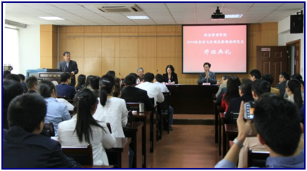 4月22日下午,beat365正版唯一官方网站2014级农业推广硕士农村与区域发展领域(大学生村官班)开班典礼在经管学院学术报告厅举行。院长朱晶、党委书记胡浩、副院长应瑞瑶,学科带头人钟甫宁教授以及研究生导师纷纷到场,欢迎75名大学生村官学员。开学典礼由胡浩书记主持。