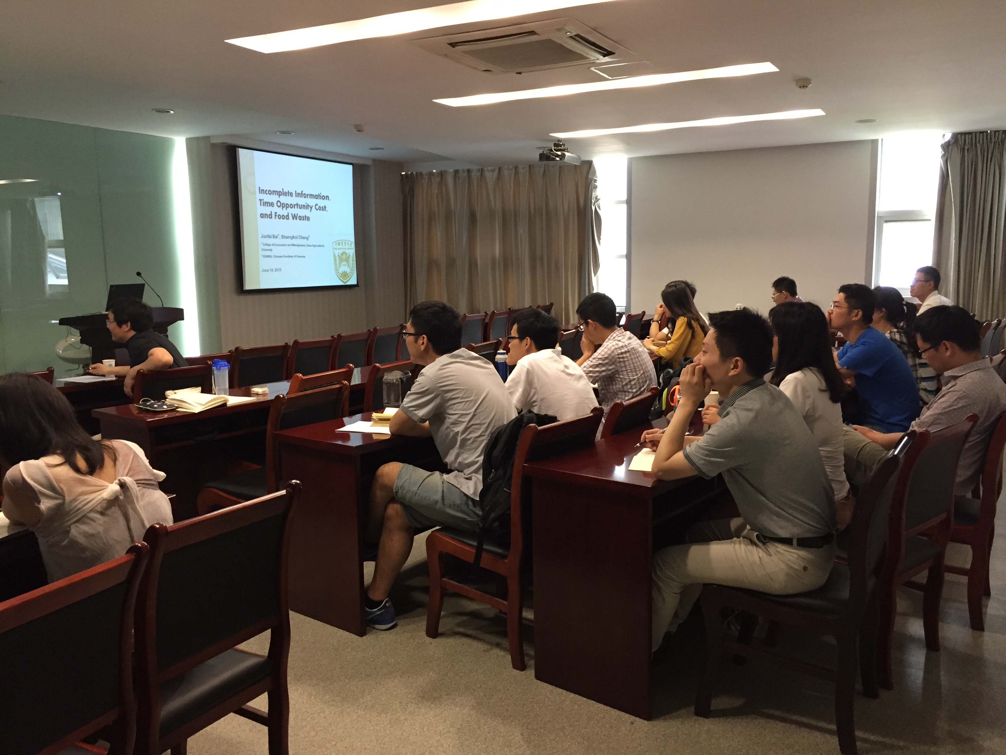 6月19日上午九点半,中国农业大学白军飞教授在逸夫楼5086为beat365官网师生作名为“不完全信息、时间机会成本与食物浪费”的学术报告,报告由徐志刚教授主持,田旭副教授、周德副教授、纪月清副教授等参加报告。