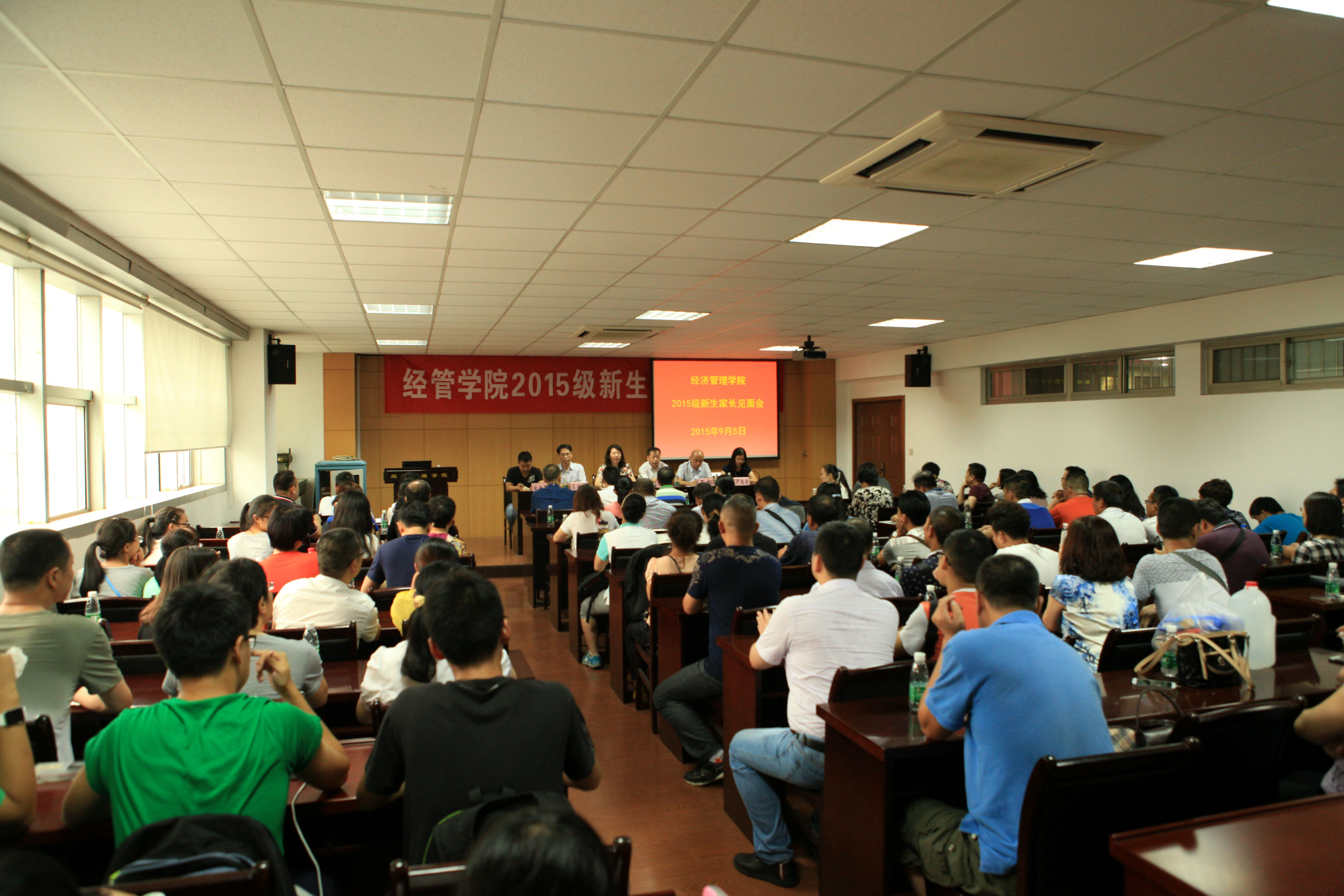 9月5日下午,beat365正版唯一官方网站2015级新生家长见面会在经管学院报告厅举行。beat365正版唯一官方网站院长朱晶,院党委书记胡浩,副院长应瑞瑶、耿献辉,国际教育学院副院长石松以及学院各系系主任、辅导员、新生班主任出席。会议由学院党委副书记卢忠菊主持。