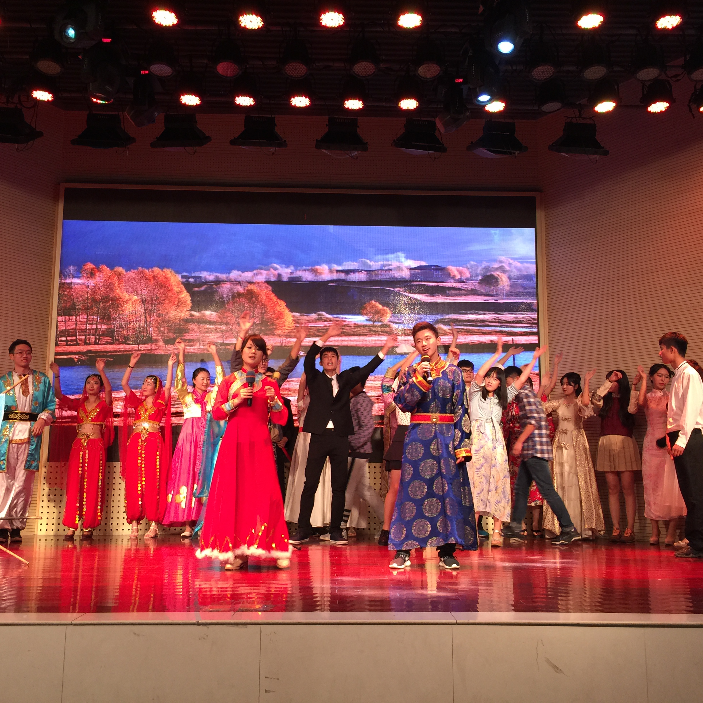 晚会节目形式多样,有歌曲、舞蹈、朗诵、走秀、器乐、音乐剧、微电影等,内容丰富,贴合学生学习和生活,呈现形式新颖,为全体新生带来了一场视觉盛宴,老师们的歌曲演唱赢得了同学们的阵阵热烈掌声,高潮迭起。内涵丰富深刻,体现了学院人才培养目标,突出了学院国际化的优势和特色,展示了经管学子昂扬向上的精神面貌。晚会还采用了微信墙互动的方式,实时推送了同学们观看晚会的真切感受和美好祝愿,互动效果非常好,在同学中反响热烈。