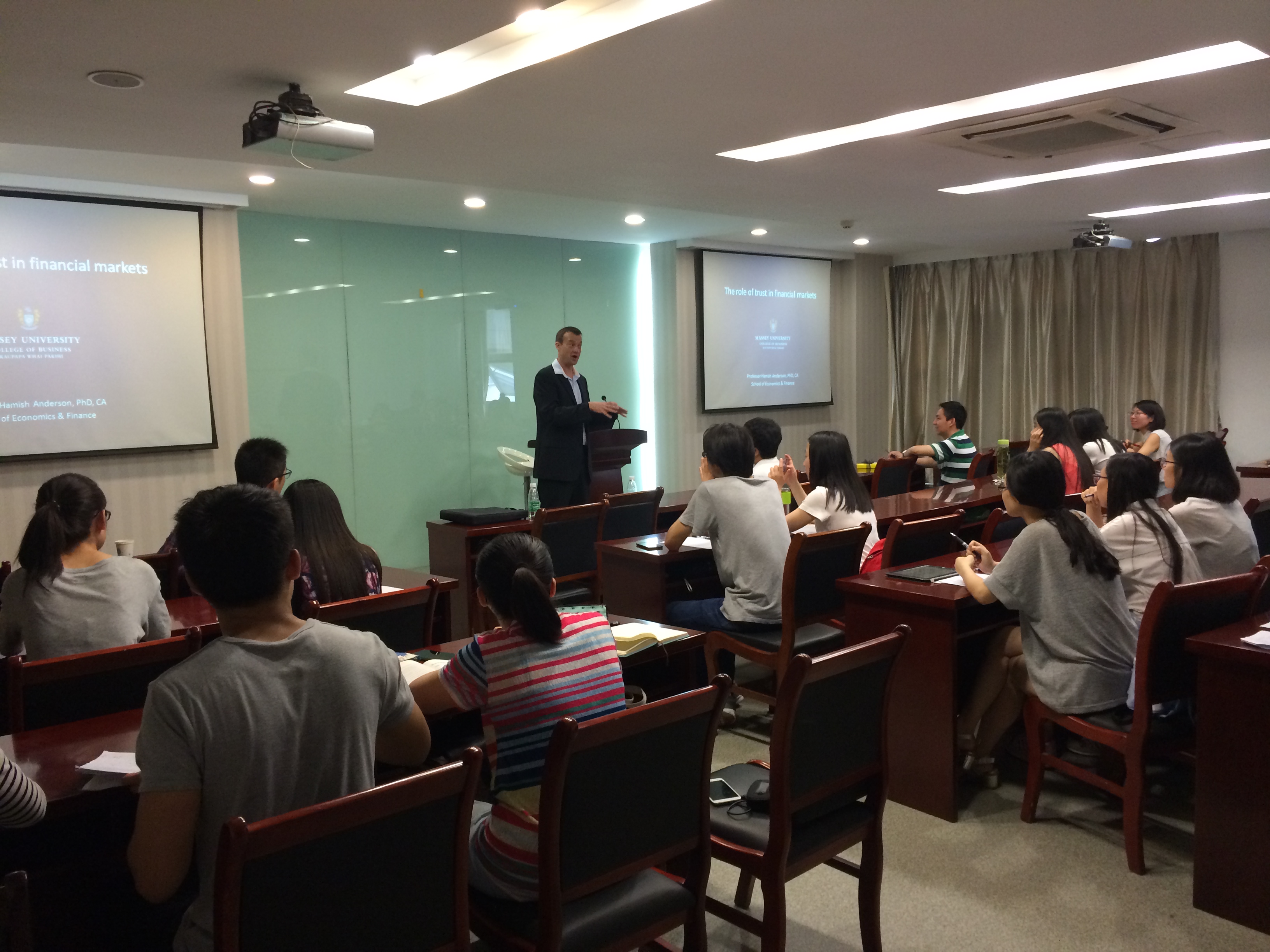 6月21日上午,新西兰梅西大学Hamish Anderson 教授在经管院报告厅为beat365官网师生作题为“The value of trust in financial markets”的学术报告。报告由经管院副院长林光华教授主持。