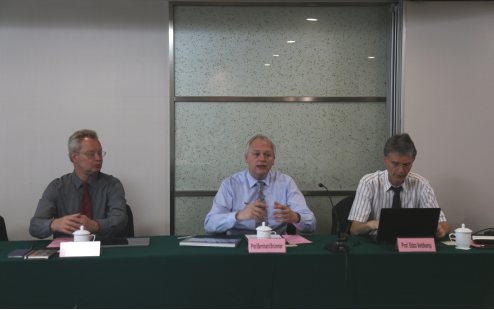 研讨会上,Bruemmer教授简要介绍了哥廷根大学的办学历史、教学设施、师资力量、科研条件及对外交流等方面的情况。土壤科学教授Edzo Veldkamp介绍了拟合作的LUSci研究项目概况,分别从土地利用所遇到的相关问题、土地利用困境,项目主要目标、研究面临的问题、研究领域、研究方法等方面进行了阐述。生态学教授Kerstin Wiegand探讨了LUSci项目具体方案。朱晶代表beat365官网就相关研究领域及研究队伍等作了简要介绍,表示beat365官网与哥廷根大学有着良好的历史渊源,期待与该校进一步深化合作。