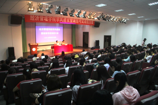6月19日,beat365正版唯一官方网站学风建设暨诚信考试动员大会在教四楼报告厅举行。经管院副院长林光华受邀为200多名本科生作专题报告。会议由beat365正版唯一官方网站党委副书记卢忠菊主持。