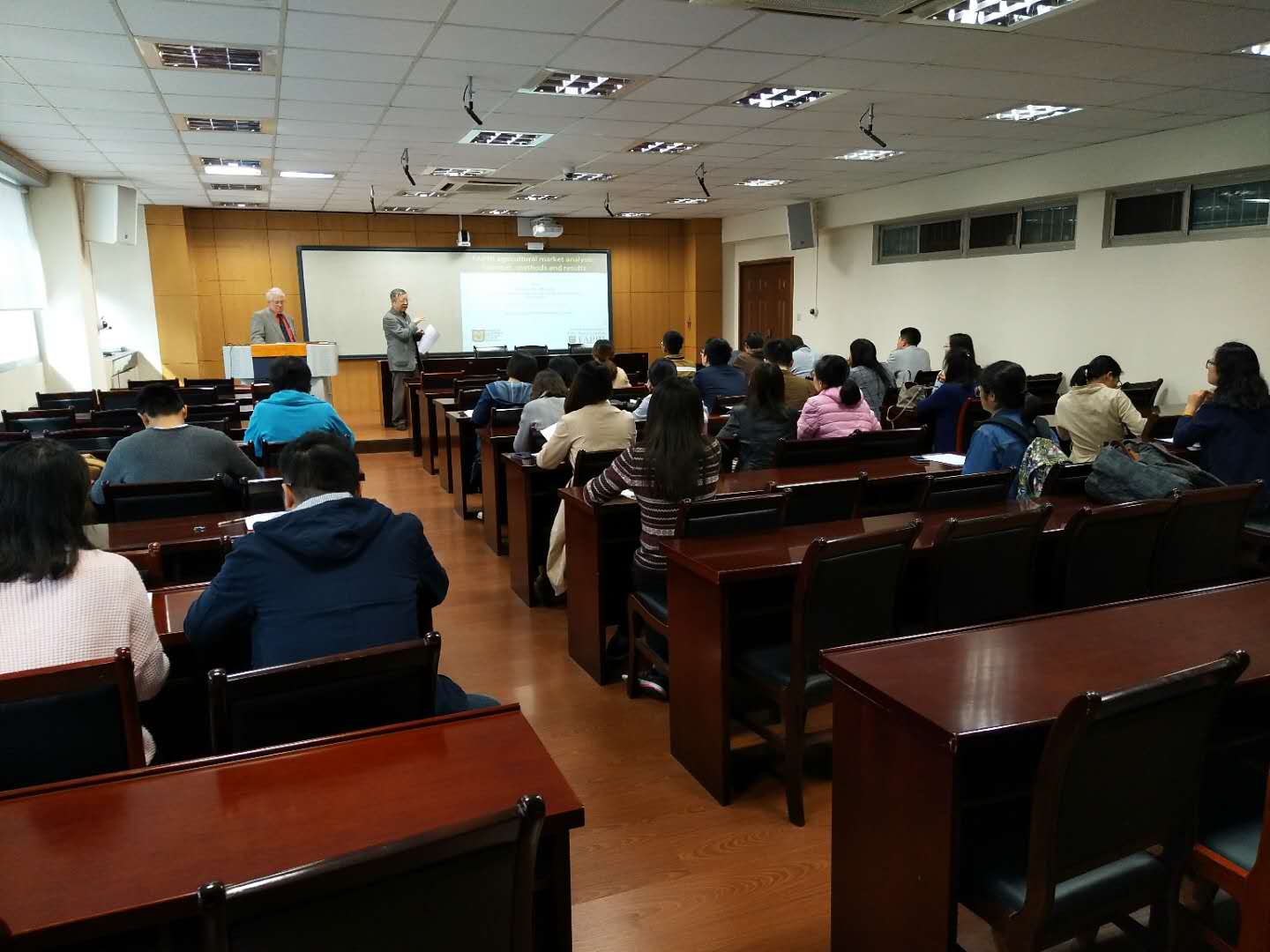 2017年10月26日上午,美国密苏里大学农业和应用经济学霍华德考登教授,密苏里大学农业、食品及自然资源学院国际项目主任,密苏里大学粮食和农业政策研究所联合创始人William Meyers教授在逸夫楼5045为beat365官网师生作了题为“FAPRI agricultural market analysis: Context methods and results?”的报告,报告由学院钟甫宁教授主持。