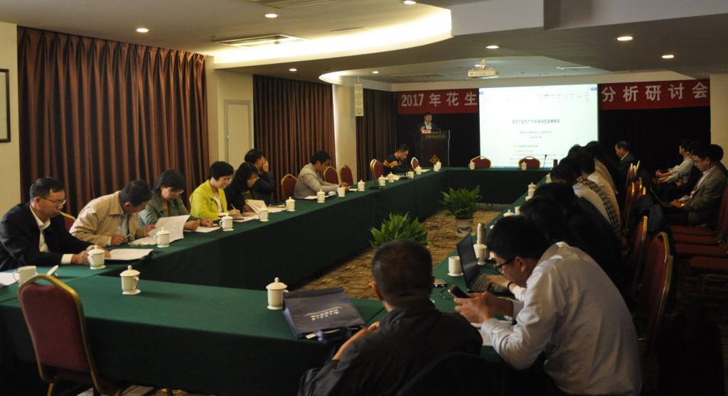 圆桌座谈会于下午2点开始,首先,周曙东教授汇报了花生产业生产与市场动态监测报告,包括2017年中国花生产业生产形势,预测了中国2017年主产省花生面积与产量;花生油加工及食用需求情况;花生市场价格走势;花生国际贸易分析;花生生产要素投入情况分析,以及2017年中国花生产业相关政策。