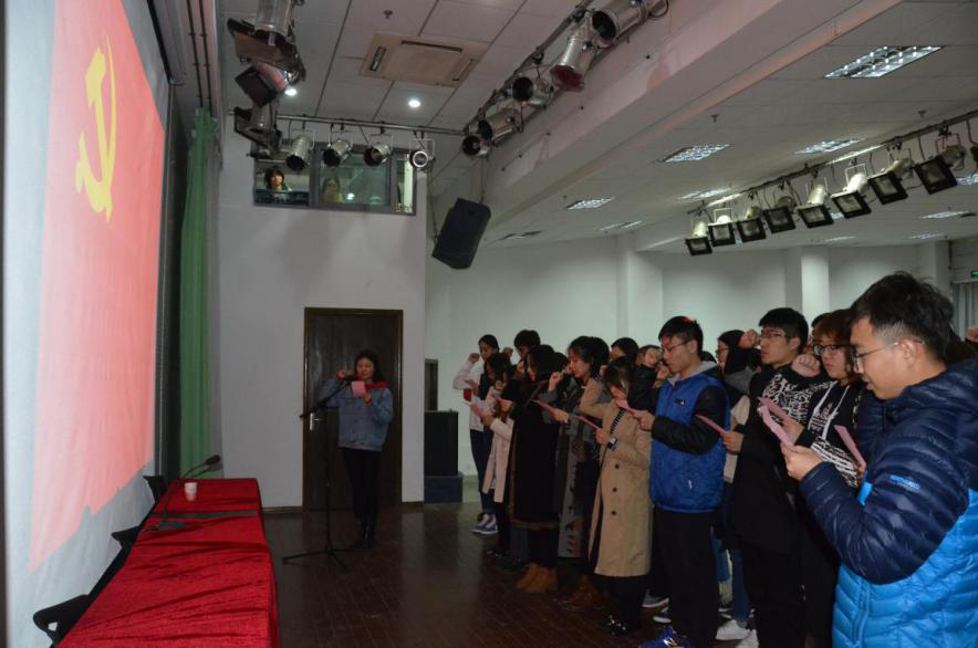 报告会后,全体学生党员在辅导员李扬老师的带领下重温了入党誓词
