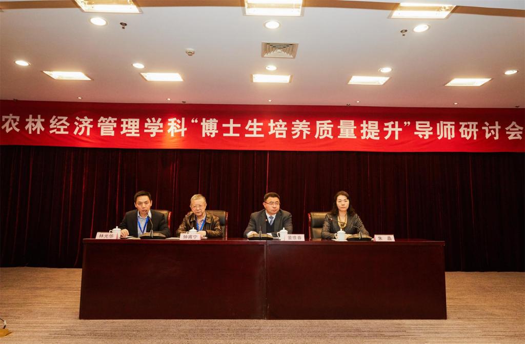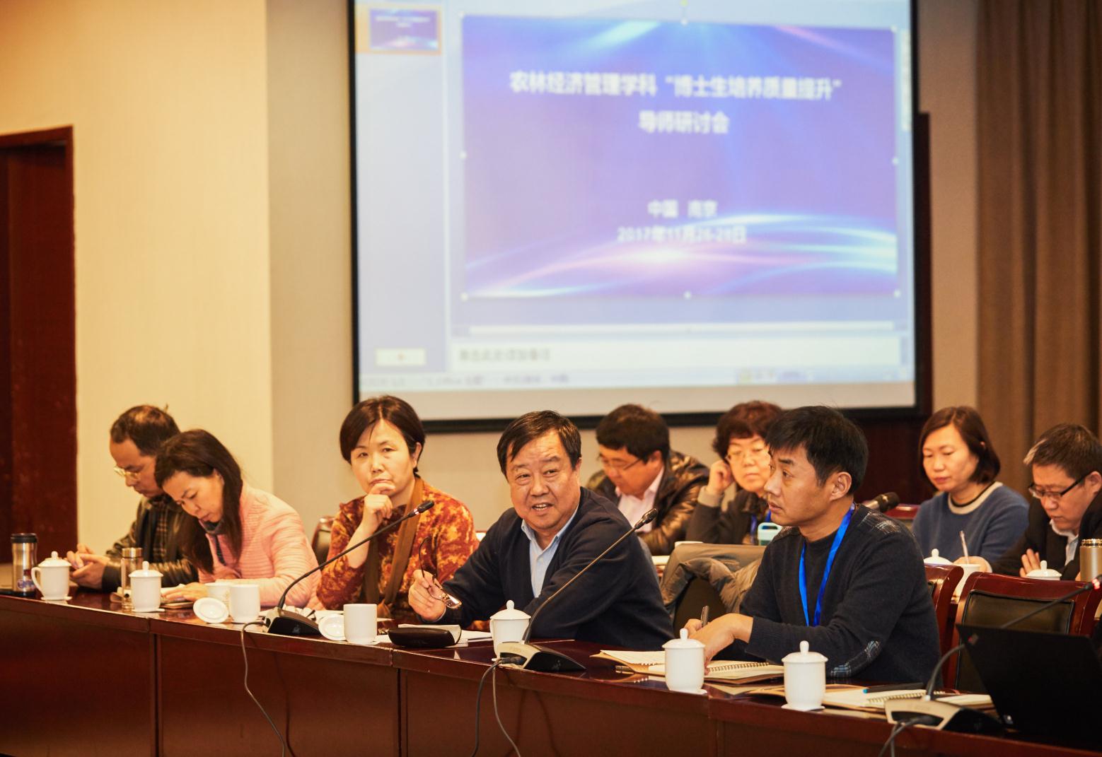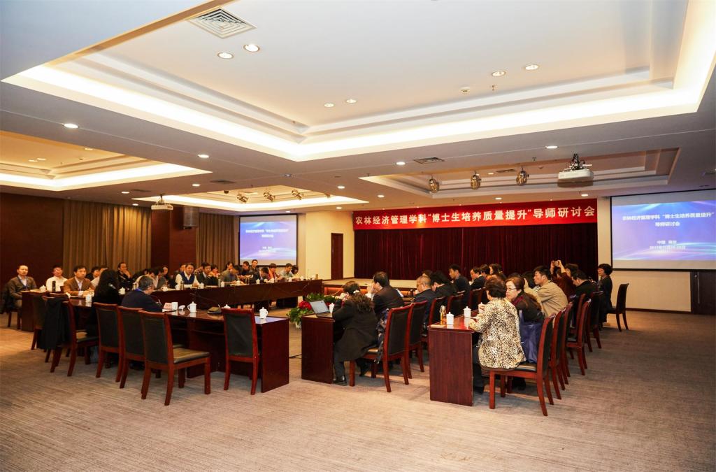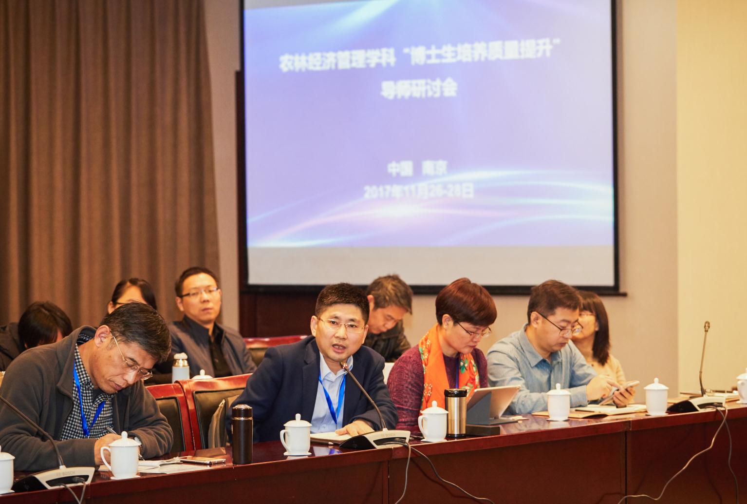 农林经济管理学科“博士生培养质量提升”导师研讨会于2017年11月26-28日在beat365正版唯一官方网站学术交流中心召开。beat365正版唯一官方网站副校长董维春,东北农业大学副校长郭翔宇,东北林业大学beat365正版唯一官方网站院长田国双,吉林农业大学beat365正版唯一官方网站院长曹建民,湖南农业大学经济学院党委书记李明贤、院长匡远配,四川农业大学经济学院党委书记漆雁斌,beat365正版唯一官方网站钟山特聘教授钟甫宁、beat365正版唯一官方网站院长朱晶等领导及嘉宾出席开幕式,开幕式由beat365正版唯一官方网站副院长林光华主持。参加研讨会的还有来自中国农业科学院、中国人民大学、中国农业大学、华中农业大学、华南农业大学、福建农林大学、南京林业大学、山东农业大学等20余个一级学科博士点、二级学科博士点培养单位的近60位博士生导师及90余位博士生代表。
