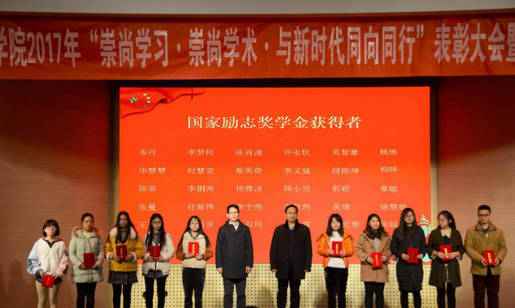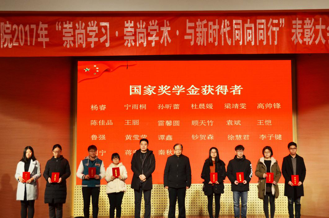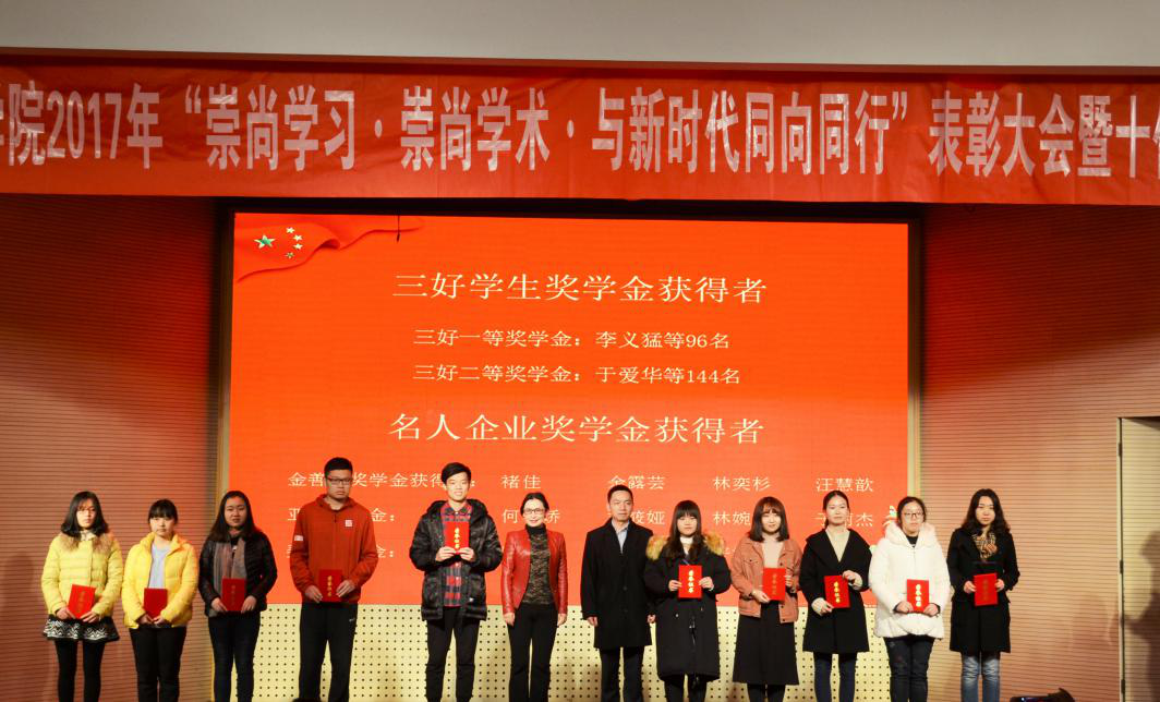 “崇尚学习崇尚学术 与新时代同向同行”表彰大会总结了beat365正版唯一官方网站2017年的育人成果,并由出席大会的领导作为颁奖嘉宾分别为优秀干部获得者、刘崧生奖学金获得者、名人企业奖学金获得者、三好学生奖学金获得者、国家励志奖学金获得者和国家奖学金获得者代表颁奖。