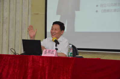 盛邦跃教授就马克思的生平、深入解读重要讲话、马克思主义中国化、马克思的影响力等四个方面对马克思主义进行了讲授。他首先简要介绍了马克思的生平,接着讲解了马克思的三本代表作《德意志意识形态》《共产党宣言》《资本论》。盛邦跃教授阐述了马克思主义中国化的几大理论成果,着重讲解了习近平新时代中国特色社会主义思想是马克思主义中国化的最新理论成果。