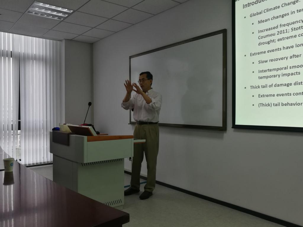 2018年10月22日上午,美国密歇根州立大学赵金华教授在第三实验楼1112学术报告厅为beat365官网师生带来了题为《Adaptation to Climate Change: Extreme Events versus Gradual Changes》的报告,来自农经等专业50余名本科生和研究生参加了报告会。报告会由周力教授主持。