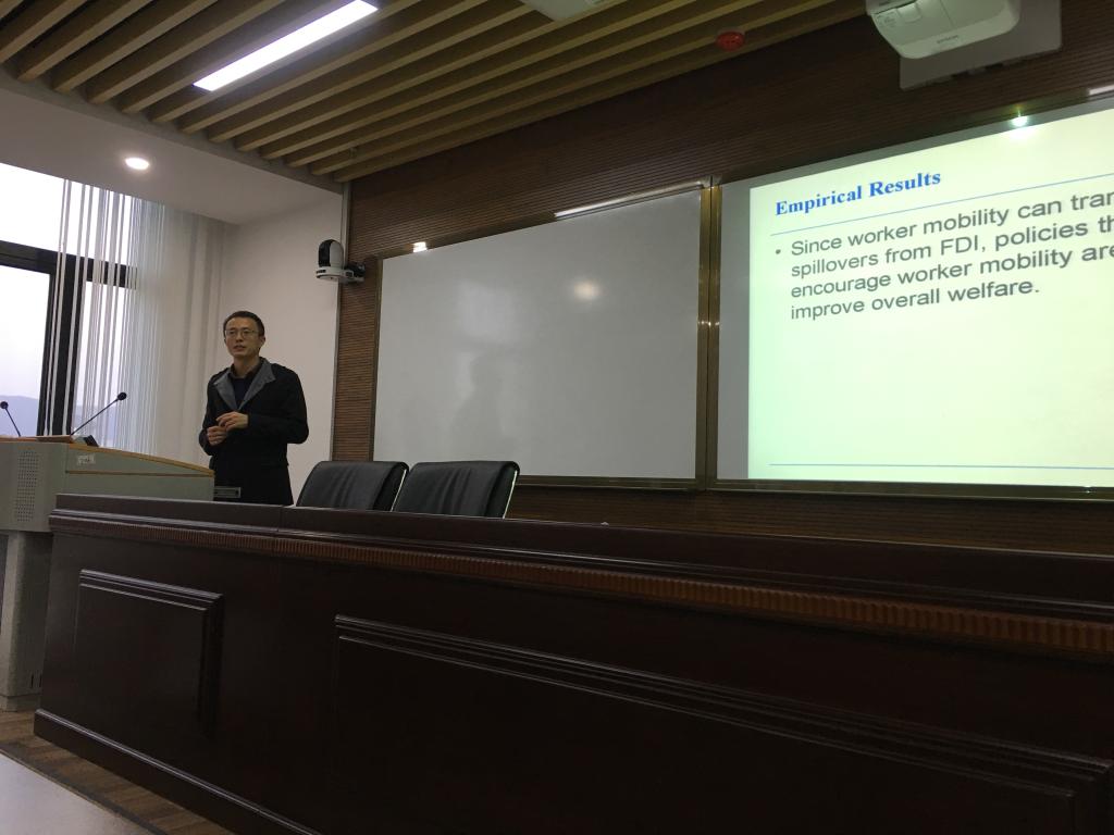 2018年12月7日下午,澳大利亚詹姆斯库克大学、澳大利亚中澳经济学会(CESA)主席孙思忠副教授在第三实验楼706学术报告厅为beat365官网师生带来了题为《Foreign Direct Investment and Product Quality in Host Economies: The Role of Worker Mobility》的报告。报告会由展进涛教授主持。
