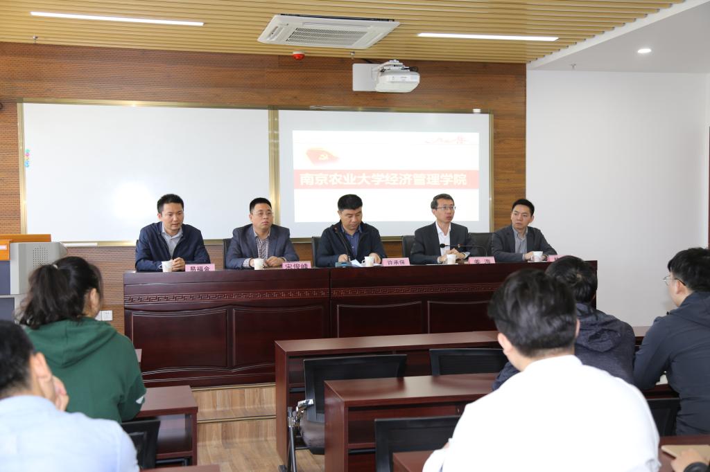 姜海代表学院党政领导班子对宋俊峰副书记和易福金副院长表示欢迎,并感谢学校组织部门一直以来对经管学院的关心和支持。姜海表示,学院将在学校党委和行政的领导下,坚决贯彻习近平新时代中国特色社会主义思想,紧紧围绕“立德树人”的根本任务,从学院的客观实际与大学办学一般规律出发,牢牢抓住人才培养、科学研究、社会服务等重点和关键点,以团结奋进的精神和务实高效的作风,力促各项工作开创新局面。