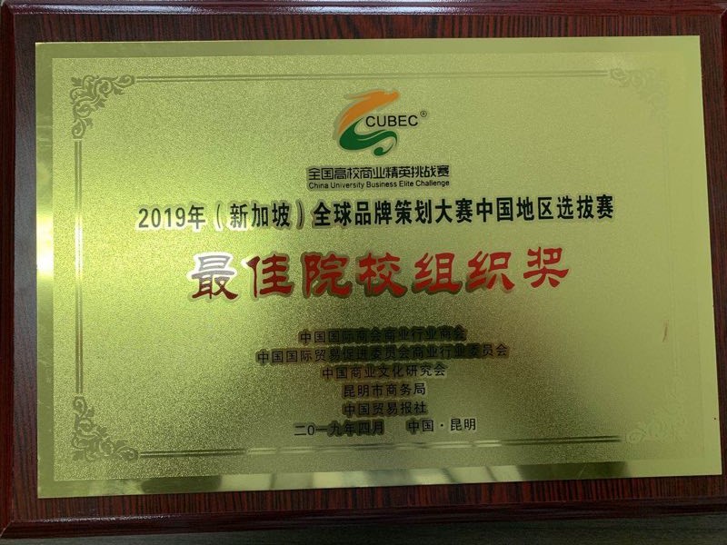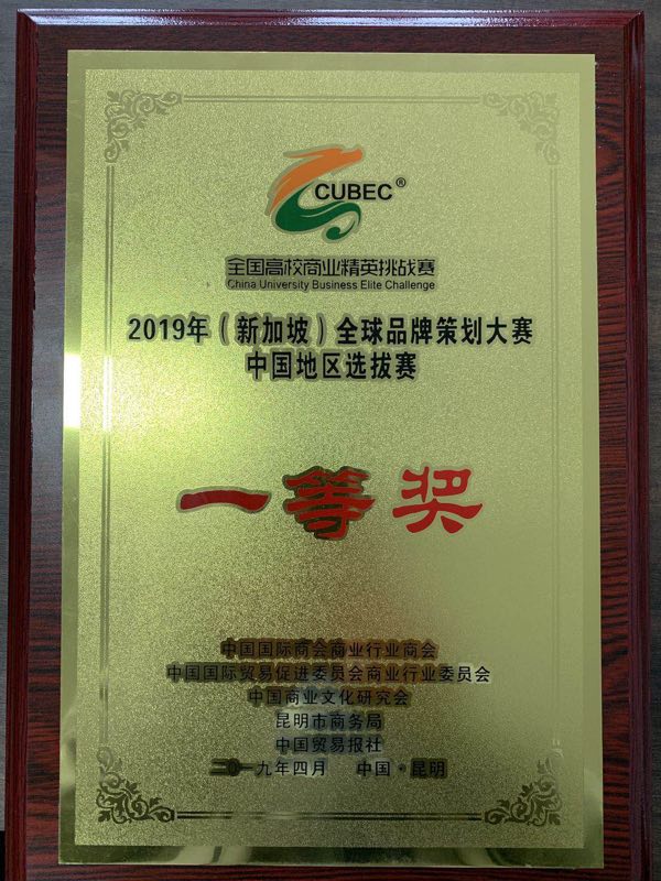 4月28日,2019(新加坡)全球品牌策划大赛中国地区选拔赛在昆明进行,由学院张兵兵老师和巩师恩老师带队并指导,十四名本科生组成的三支代表队参赛,斩获佳绩,三支队伍同时荣获一等奖,其中一支队伍取得代表我校赴新加坡参加总决赛的资格。