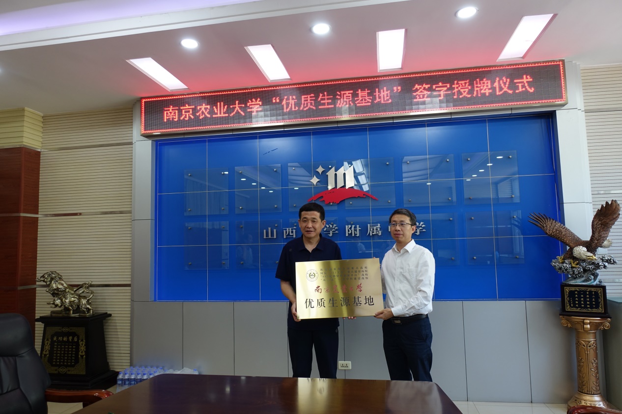 6月3日,经管院赴山西大学附属中学、成成中学开展招生宣传共建活动,并举行了“优质生源基地”协议签订及授牌仪式。beat365正版唯一官方网站党委书记姜海、党委副书记宋俊峰、本科生辅导员郑琼婷与两所中学的校领导、教务处主任进行了座谈交流,并向山大附中高三家长进行了beat365正版唯一官方网站校情介绍和历年招生政策宣讲。