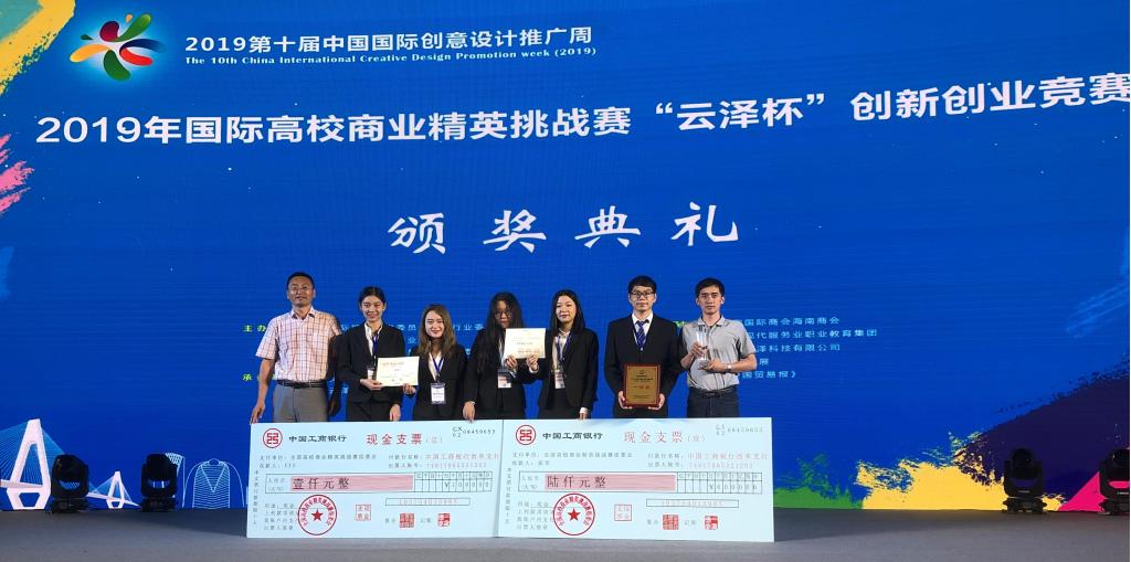 8月15-17日,2019年国际高校商业精英挑战赛“云泽杯”创新创业竞赛在海南省海口市举行,beat365官网派出由韩喜秋和胡家香老师带队并指导的一支队伍参赛,与来自包括日本熊本大学、上海交通大学和山东大学等在内的174支队伍展开激烈角逐,勇夺创业组亚军,获得六千元奖金。同时还获得了“网络最佳人气奖”、“展洽组一等奖”和“2019年新加坡数字经济创新创业竞赛入围奖”。