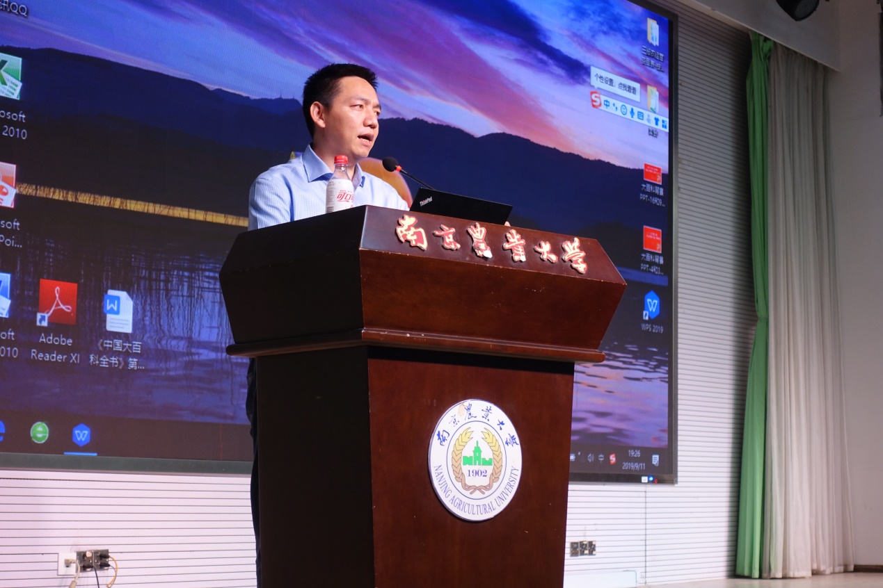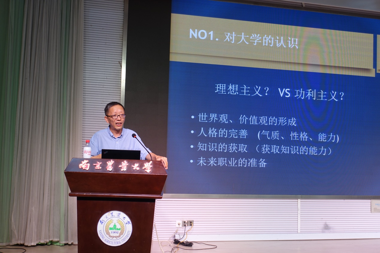 首先,院党委书记姜海代表全体教师和中高年级学生对新同学的到来表示热烈的欢迎。姜书记带领同学们学习了习近平总书记在9月5日给全国涉农高校的书记校长和专家代表的回信,鼓励各位新同学争当“知农爱农新型人才”,并对各位新同学提出了“有自信、常自省、能自在、成自我”四点要求,希望同学们通过四年的努力成为能被同学信赖、工作上有能力、懂得感恩父母和对自我认可的人。姜书记最后用习近平总书记的一句话“人的一生只有一次青春,现在的青春是用来奋斗的,将来的青春是用来回忆的”作结,勉励同学们要珍惜青春时光,努力奋斗!