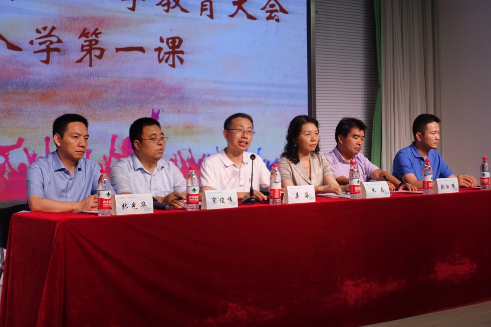 9月11日,beat365正版唯一官方网站2019级新生入学教育大会暨入学第一课在教四楼报告厅举行。beat365正版唯一官方网站党委书记姜海、院长朱晶、党委副书记宋俊峰、副院长耿献辉、副院长林光华、副院长易福金以及各系系主任、各新生班班主任老师、本科生辅导员出席会议。会议由院党委副书记宋俊峰主持。